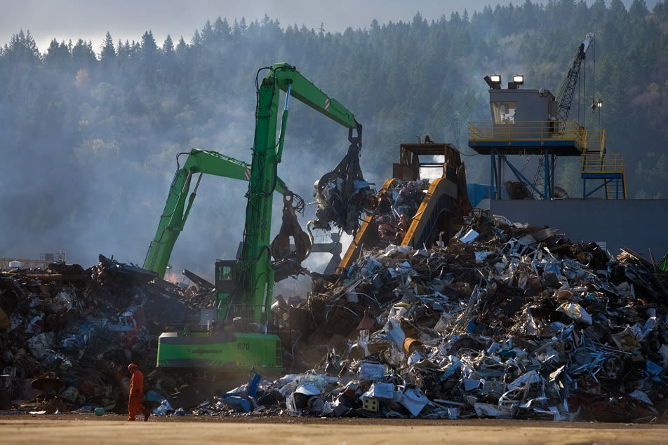Tour Portland’s metalworking companies and you’ll find factory yards literally shuddering with roaring engines. Elephantine cranes throw around junked cars as casually as a child tosses a toy, and massive dump trucks loaded with tons of jagged, rusted steel scrap rumble past on tires taller than a man. Welders wearing masks and fireproof coats burn imperfections off of freshly cast backhoe teeth. Day shift, swing shift, graveyard…the production never stops.