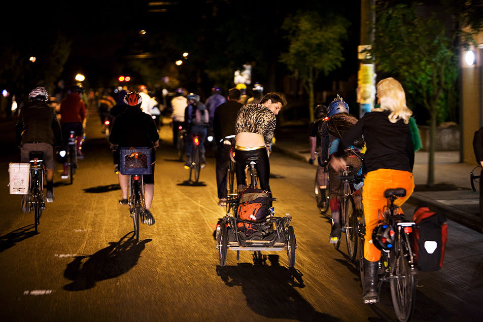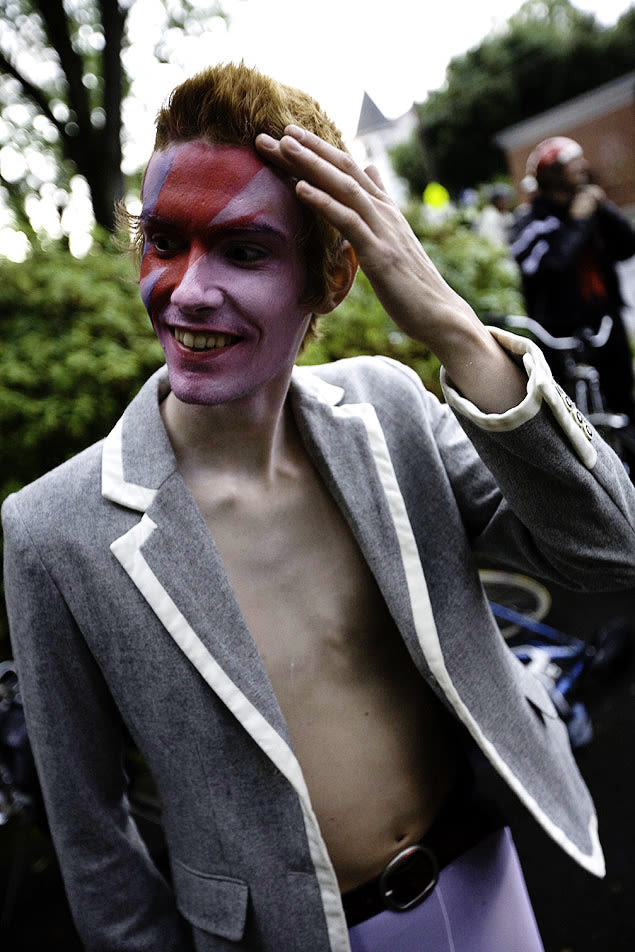 Though the rain dampened the moods of a few would-be glam rockers, the Bowie vs. Prince Mobile Dance Party on June 19 was a raging ride. With around 100 bikers present, the ride began in Dawson Park and meandered through North Portland till almost dawn, picking up zombie stragglers and dropout riders (aka "freak bikes"—tall bikes, circus bikes, other offbeat bikes) along the way. Many of the participants, decked out in spandex, gold sequins, face paint and more spandex&#...
