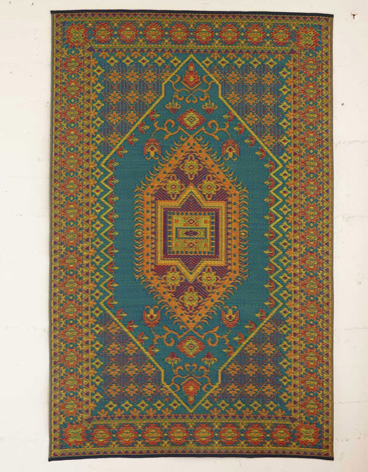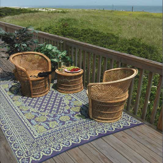 Like flowers in the garden, outdoor rugs can add color and punch to a patio, deck or backyard. They can transform a space into a place by defining a smaller area within the larger outdoors, complementing the vertical spatial definition created by the trees, shrubs and plants.
