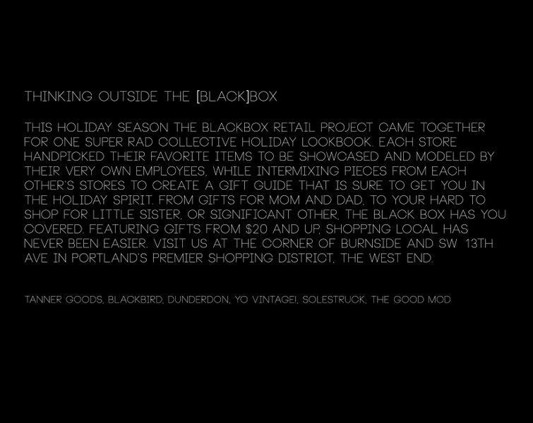 Slideshow Blackbox Holiday Lookbook November 20, 2012 Photos by Charise Cusanelli of The neighbors at West Burnside's Blackbox building debut a community lookbook with goods from each shop mixed and matched. Filed under Shop Local Share Share on Facebook Share on Twitter Share on LinkedIn Share on Pinterest Share via Email Share on Reddit Show Comments