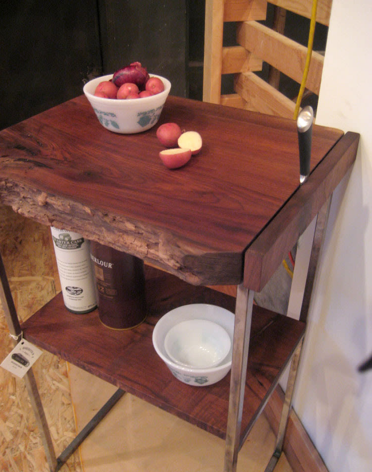 Slideshow Slide Show: Americana Portland-style, Circa 2013 August 9, 2013 Carlino's "signature" piece, the Oregon Coffee Table. (Does everything served on this table have to be sourced from within 100 miles of said table?)The kitchen work table, complete with magnetized knife holder (for five knives).The bench: epitome of simplicity. (The background: ADX founder Kelley Roy's old-school station wagon.)A new definition of strap-hangers: a live-edge, salvaged wood shelf hanging from a leather strap.(No sweaty subway rides here.)Simple, minimal materials and lines: salvaged wood, steel tubing. of Filed under Share Share on Facebook Share on Twitter Share on LinkedIn Share on Pinterest Share via Email Share on Reddit Show Comments