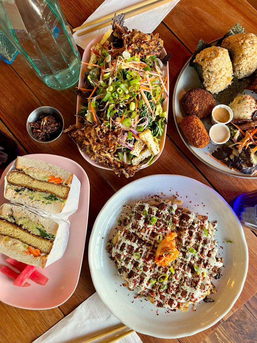 In a long and narrow wooden dining hall, diners slurp udon noodles in Japanese curry broth and nosh delicate tofu katsu, crisp karaage, brown rice onigiri with creamy tofu. Entirely vegan, Obon Shokudo makes everything in-house, from the tofu to hot sauce. A variety of curry and bento specials, including a katsu sandwich and vegetable curry served with rice, salad, and pickles, make for an ideal lunch: quick, filling, and never too heavy. Bringing Fido along? Grab some complimentary sushi for dogs—just be sure to snap a pic for the ’gram, as requested by the restaurant. —AF