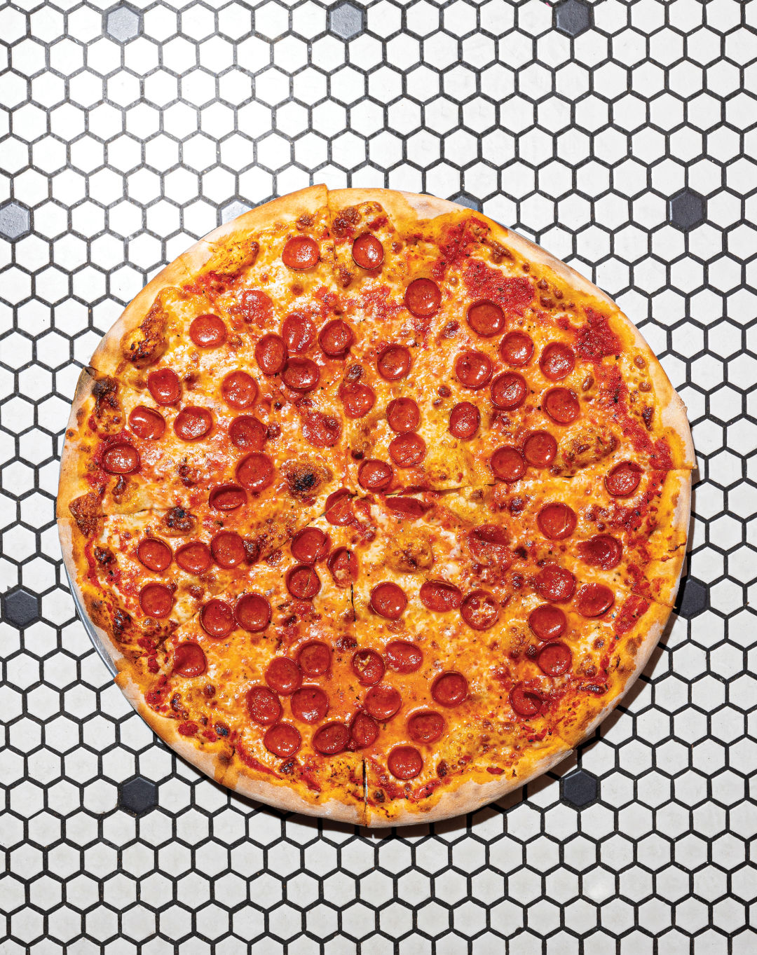 crisp and straight as the planks of the boardwalk at Point Pleasant Beach. Look at that cheese—well done, whether it’s unadorned or supporting a layer of crisped soppressata and neon yellow banana pepper rings. Find a true-to-form Trenton tomato pie here, as well as a bar pie, crackery and svelte and appreciably cheesy.—Brooke Jackson-Glidden