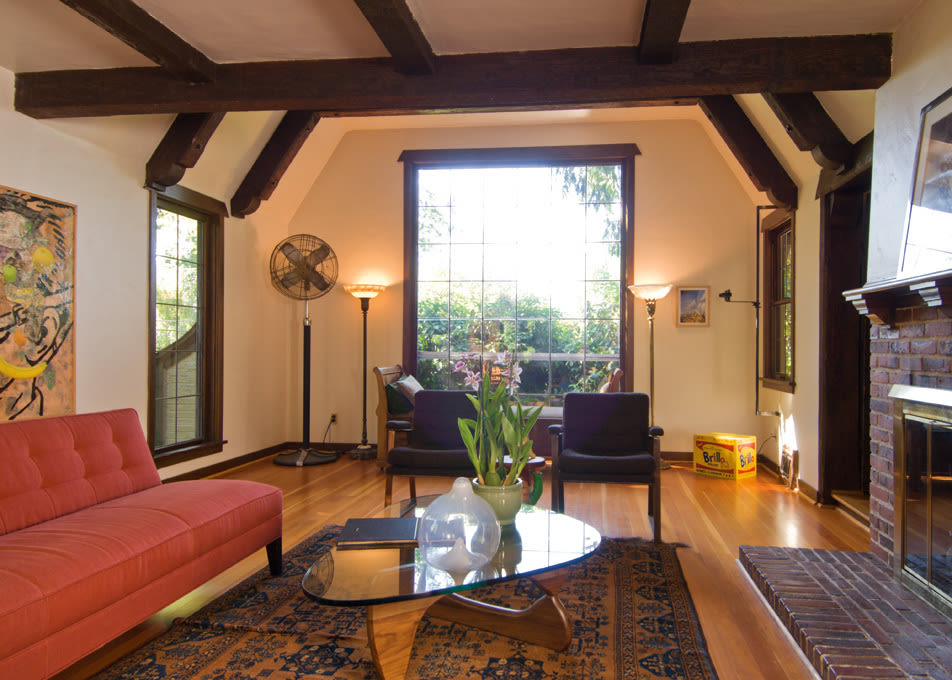AFTERNOON SUN FLOWS through French doors into MK Guth and Greg Landry’s dining room, splashing bright squares of light across the Persian rug. Sparingly appointed with contemporary prints, a teak dining table, and a white-paper George Nelson “Saucer” lamp that hovers over the table, the room is at once welcoming and coo...