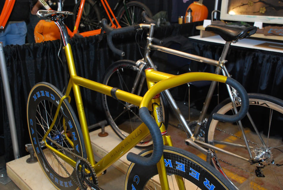 Crowded into the Staver Locomotive Building over Halloween weekend, was transportation of a different and more sustainable sort. Handmade bicycles were perched atop the toy train tracks that permanently reside in the venue. On this day, the tracks snaked through dozens of booths, home to sleek rides and their designers, along with a plethora of cycle-centric gadgets and garments. This gathering of some 2000 interested bike geeks marked the second installation of the Oregon Handmade Bicycle...