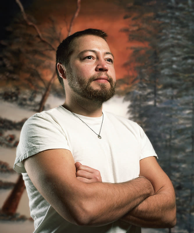 ECHOING the long history of heroic portraits of presidents, generals, patriarchs, or just a beloved family member at Sears, Lorenzo Triburgo’s “Transportraits” present their subjects slightly elevated, gazing confidently outward over the world. But behind the poses are deeper complexities. Despite their muscular arms, beards, flannel shirts, and otherwise masculine traits, these subjects were all born fe...