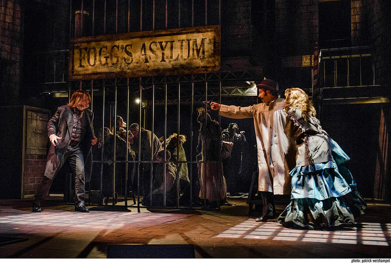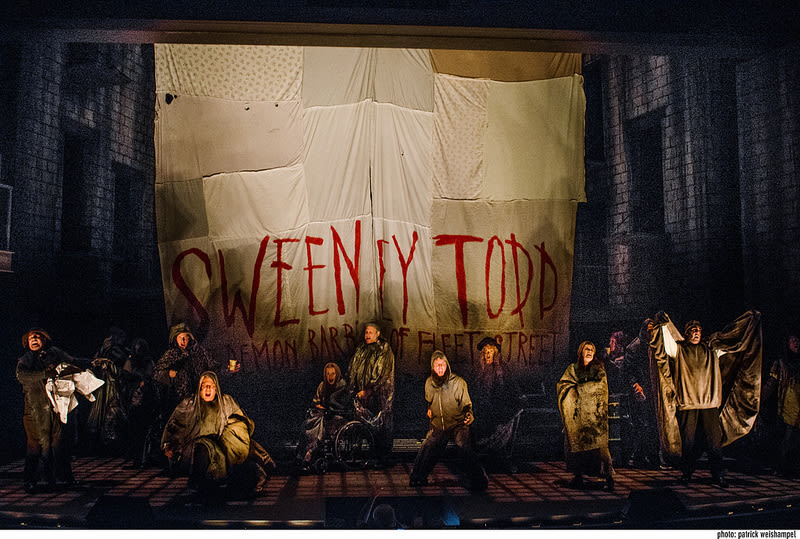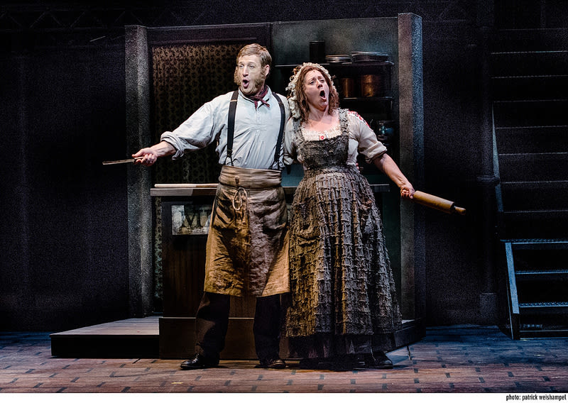 Slideshow PCS's Sweeney Todd, The Demon Barber of Fleet Street September 20, 2012 Sweeney Todd, The Demon Barber of Fleet Street at PCSArt by Michael BuchinoSweeney Todd OpeningPhoto by Patrick WeishampelBeggar Woman and EnsembleMichele Ragusa as the Beggar Woman. Photo by Patrick WeishampelJohanna and the Bird SellerRita Markova as Johanna and Tim Smith as the Bird Seller. Photo by Patrick Weishampel Sweeney and Mrs. LovettAloysius Gigl as Sweeney and Gretchen Rumbaugh as Mrs. Lovett. Photo by Patrick WeishampelJohanna and AnthonyRita Markova as Johanna and Louis Hobson as Anthony. Photo by Patrick WeishampelSweeney and Mrs. Lovett with RazorAloysius Gigl as Sweeney and Gretchen Rumbaugh as Mrs. Lovett. Photo by Patrick WeishampelSweeney and Judge TurpinAloysius Gigl as Sweeney Todd and Matthew Alan Smith as Judge Turpin. Photo by Patrick WeishampelFogg's AsylumPhoto by Patrick Weishampel of Portland Center Stage tackles Sondheim's macabre masterpiece about a barber on a vengeful razor rampage Filed under Slideshow, Theater, PCS, Portland Center Stage Share Share on Facebook Share on Twitter Share on LinkedIn Share on Pinterest Share via Email Share on Reddit Show Comments