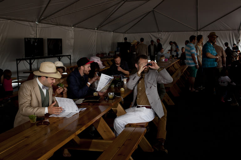 PoMo donned our white suit and joined a crowd of dapper gentlemen and ladies in hats for the opening day at Portland Meadows, as reimagined by branding gurus OMFGCo. Photos by Markus Shearer and Chris Mueller.