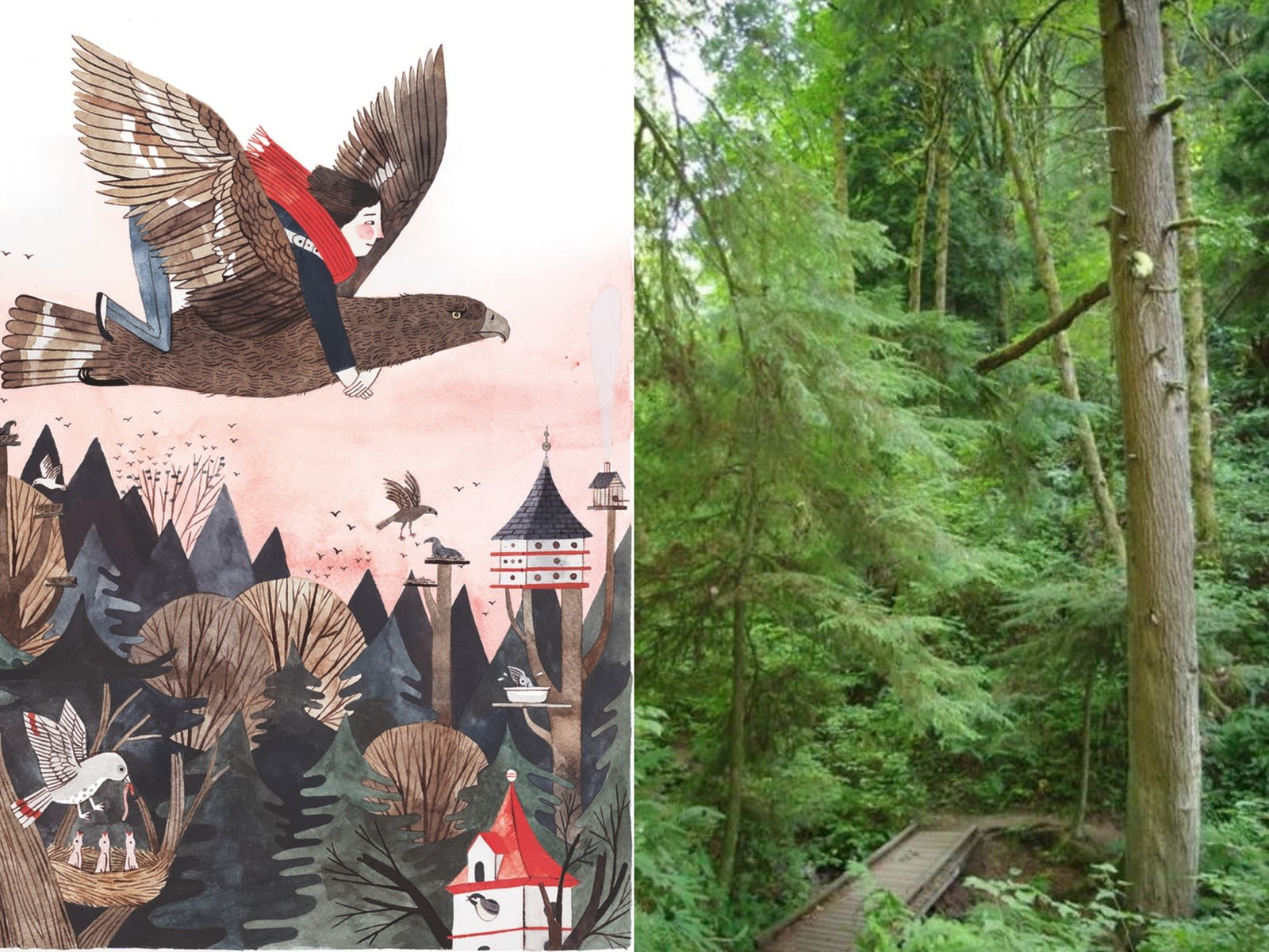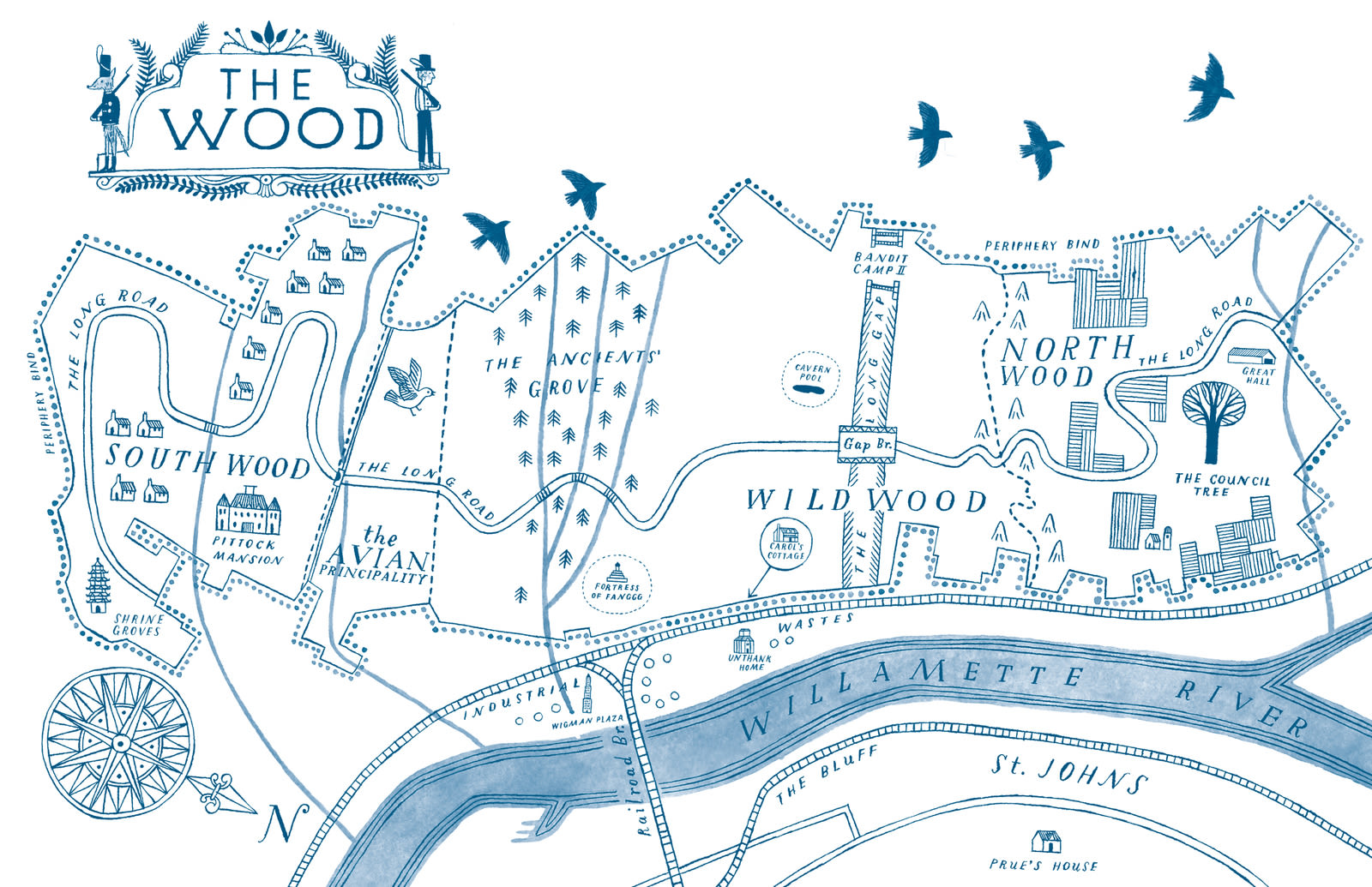 In 2010, illustrator Carson Ellis and singer/writer Colin Meloy rolled out a map of Forest Park and began to imagine what it would look like as a fairy tale world of talking animals and epic struggles. The Pittock mansion became a government palace, the crumbling Gas and Coke building became an insidious orphanage, and the zoo a prison. Here, we compare Ellis’s illustrations from The Wildwood Chronicles alongside their real world inspirations.
