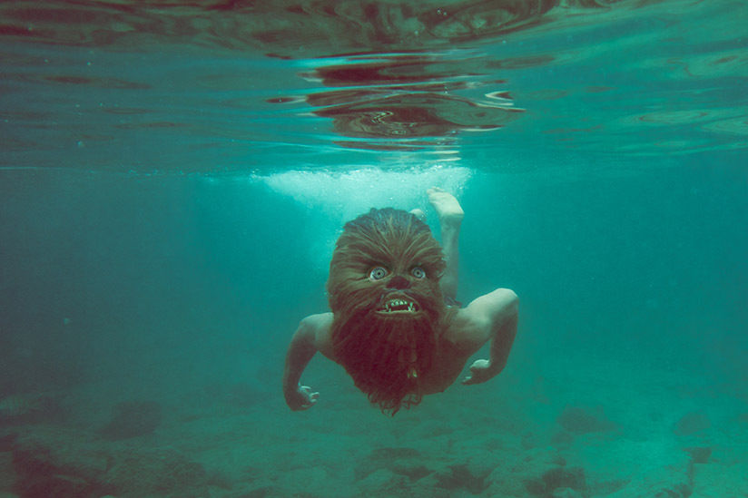 “Faces are the essential part of the human experience,” he says. “There’s so much character in a face.” Even a wookiee face. By day, Miyamoto is an art director at creative agency Roundhouse. In 2010, he bought a wookiee mask from an after-Halloween sale and starting using it to hone his photography skills. Friends and family enthusiastically volunteered as models, and the one-off creative impulse took on a life of its own. Today, Miyamoto’s Chewies drive, swim, and bowl around Portland—mundane activities made richly mesmerizing and occasionally beautiful by their juxtaposition with that familiar but strange visage.