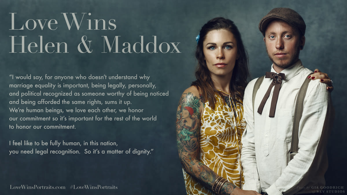 When the US Supreme Court ruled to legalize same-sex marriage on June 26 last year, Portland photographer Gia Goodrich wanted to celebrate with the couples affected. “That was such an amazing, exciting, wonderful day,” she says, “Being a photographer, it seemed like a fun thing to do, to offer to make a free portrait of them.”