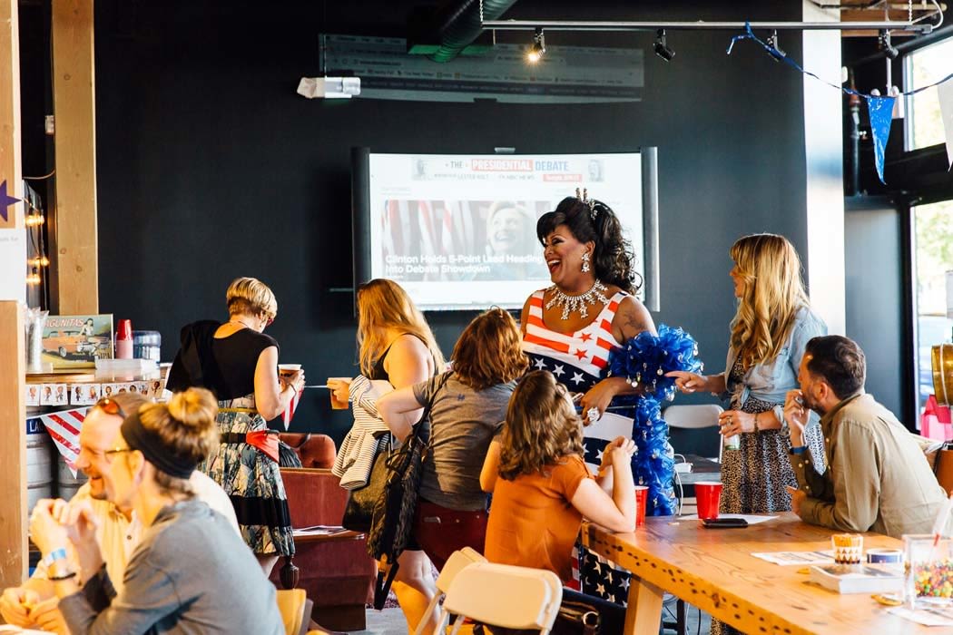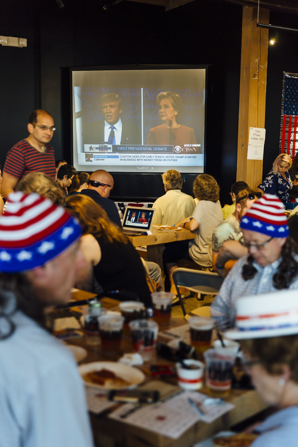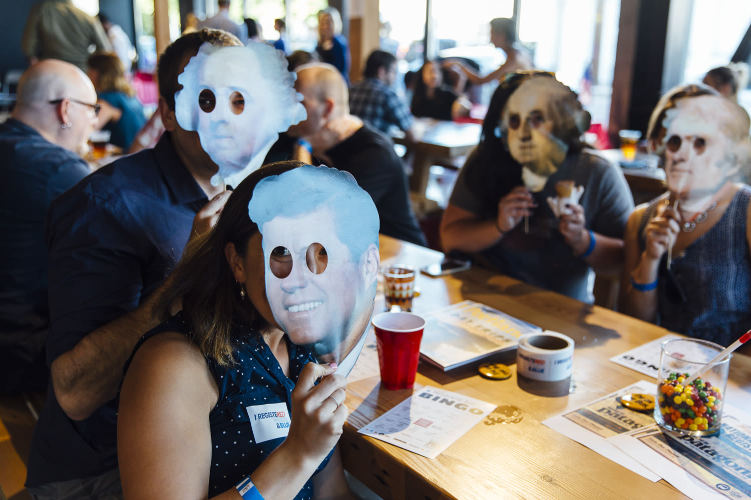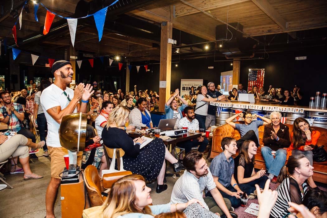 On September 26, Portlanders showed their civic enthusiasm at PoMo's Presidential Debate Bingo! More than 200 guests flocked to Lagunitas Community Room to watch Clinton and Trump face-off while tracking meme-worthy transgressions on our custom Bingo cards. Thanks to HOTLips Pizza, Salt & Straw Ice Cream, Lagunitas Brewing, and The Bus Project for making this event possible.