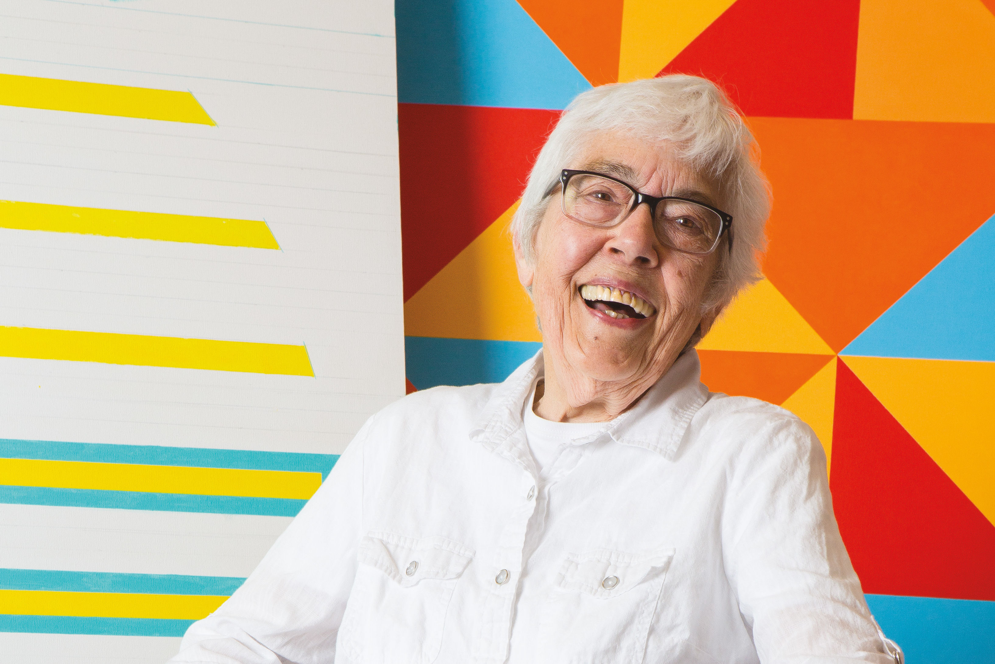 When Ellen McFadden first started working as a freelance graphic designer, precision was everything. “You had to be a walking line,” she recalls of the pre-computer need for accuracy, when designers worked without digital grids and drawing a straight line was a physical process. Born in 1928, the Portlander—a “creative” who predates the title—has followed a pioneering graphic design career with a new one in painting, her exactitude visible in meticulously arranged, brightly hued compositions. For more, check out our Q&A with McFadden.