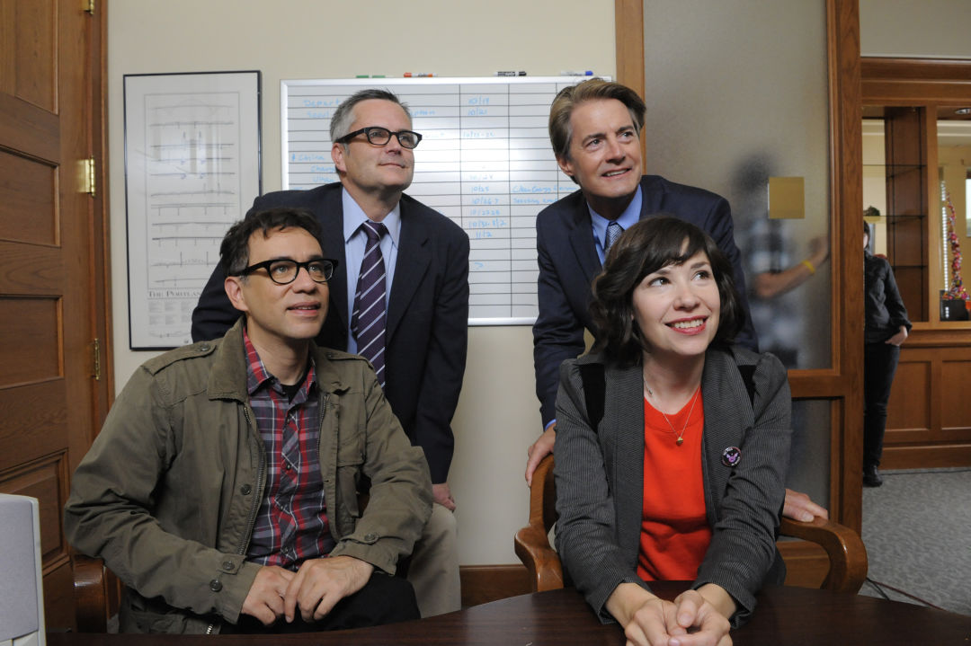 In retrospect, the show’s laughable budget turned out to be its greatest asset. This portrait of a place you kinda sorta know that looks like someone’s dad filmed it on his new camcorder reeked of experimental edge thanks to Armisen’s scrappy industriousness. Brownstein’s earned credibility won over the locals. And the SNL machine cranked in the national hype, hiding in the belly of an indie millennial Trojan horse. Vulture described it as an “IFC underdog” while naming the show the best comedy of the season.