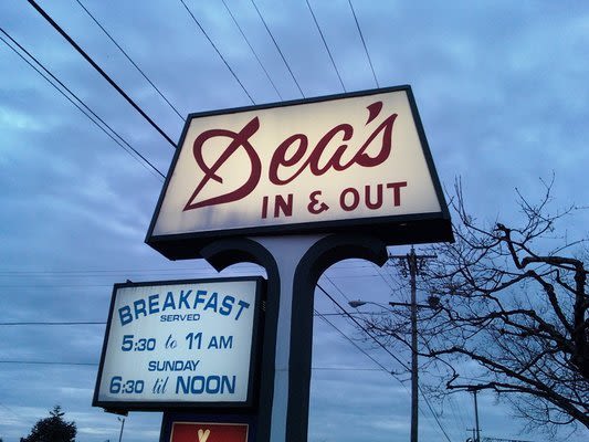 Square burgers or round burgers? The age-old debate rages on. Dea’s apparently sides with the square burger faction since that’s what gets served—between two fresh-baked hoagie buns—every lunch hour. You might call it an “old-fashion” burger, served with shoestring fries and an optional upgrade for a cold shake. Or take it a step further and get the "long burger" a rectangular burger that sidesteps the argument entirely. Breakfast is also dished up daily with mom-and-pop panache, including fluffy pancakes and homemade hash browns.