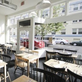 Decorated only with strips of wooden coat pegs on spare white walls, and furnished in black and blond woods, Roost recalls classic British brasseries of yore; places where simple, well-prepared food and pleasant company take center stage. In this quiet setting, chef Megan Henzel showcases a classic, New England style of comfort food, but with modern touches and a flavorful boost from regional ingredients. Anchored by comforting classics, the menu rotates with the seasons and Henzel’s whims. Stews and braises are highlights—tender, falling-apart meat cooked in a bath of seasonal vegetables and flavorful broth. Skirt steak is grilled to a perfect medium-rare, dressed with a boisterous red wine sauce, and paired with a creamy cauliflower and potato gratin. Ironically, the menu’s flashiest item is the “burger”: braised beef, shredded and wrapped in caul fat, is seared and served on an open-faced bun with watercress, aioli, horseradish sauce, and a braising jus on the side—a kind of playful, high-end sloppy joe that forces diners to get messy.