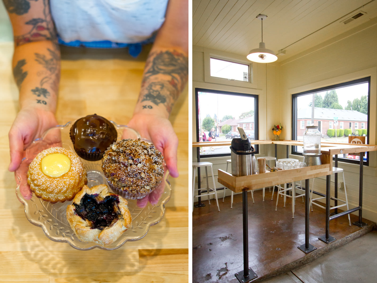 "I think we could fit about ten food carts in here," laughs Kir Jensen, owner and head whisk handler of Northeast Alberta's new bakery and cafe The Sugar Cube. To an average culinary entrepreneur the former Dovetail Bakery space wouldn't seem so spacious, but to Jensen (who has spent the last 5 years slinging swoon-worthy cupcakes and pastries out of a 100-square-foot trailer), the new shop is positively cavernous. With a full on-site kitchen, seating for 20+, and the ability to display her picture-perfect wares for the first time, Jensen is ready to ride out the cooler seasons in cozy comfort—a luxury denied to all but a few lucky cart owners. Gone are the days of correlating weather reports with sales, and in their place loom bustling mornings behind a stocked counter of hazelnut-studded chocolate chip cookies, sea salt and olive oil brownies, shortbread bars with cranberry black pepper jam, and caramel-slicked chocolate ganache cupcakes (the breakfast of champions, friends).
