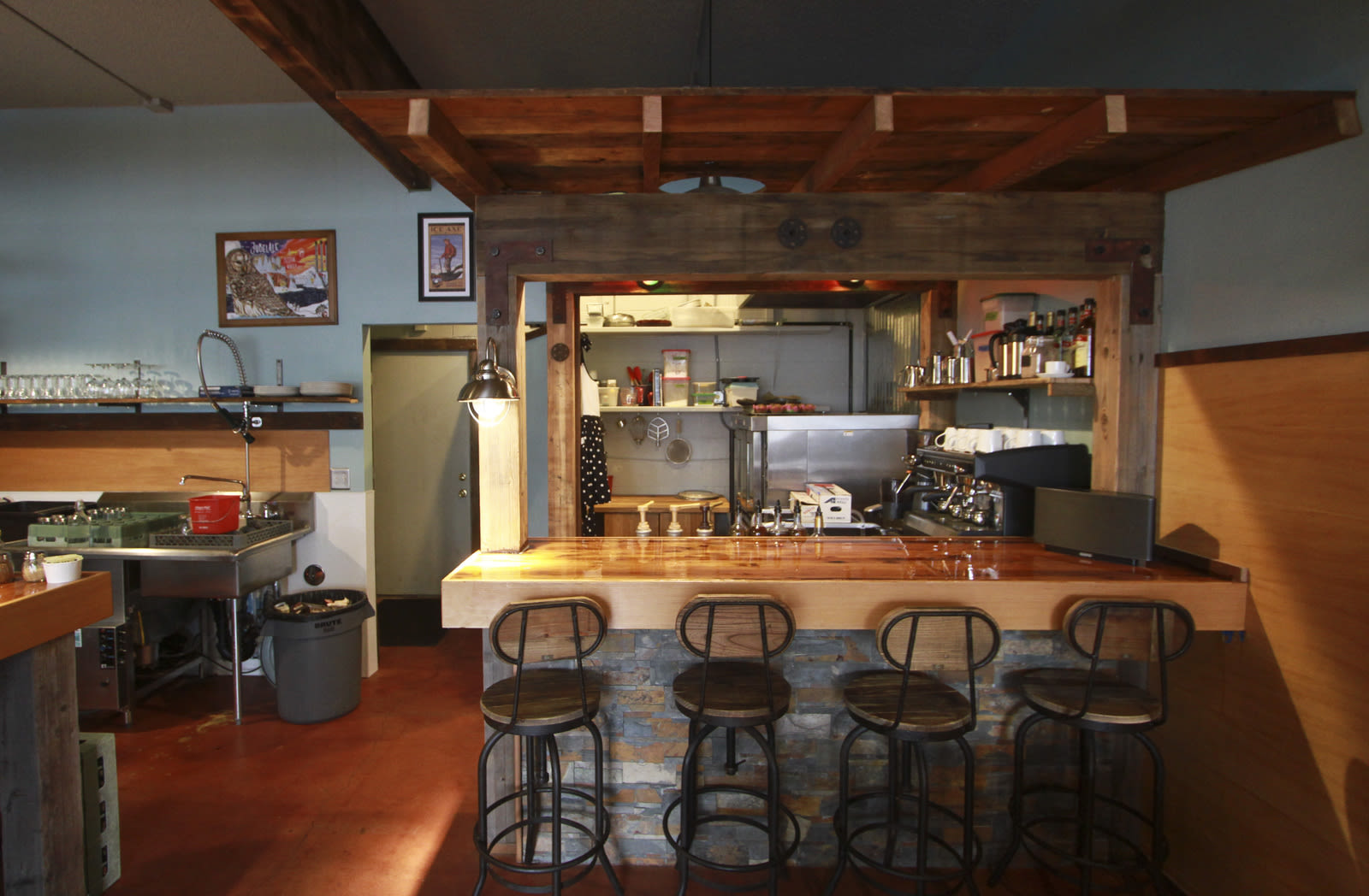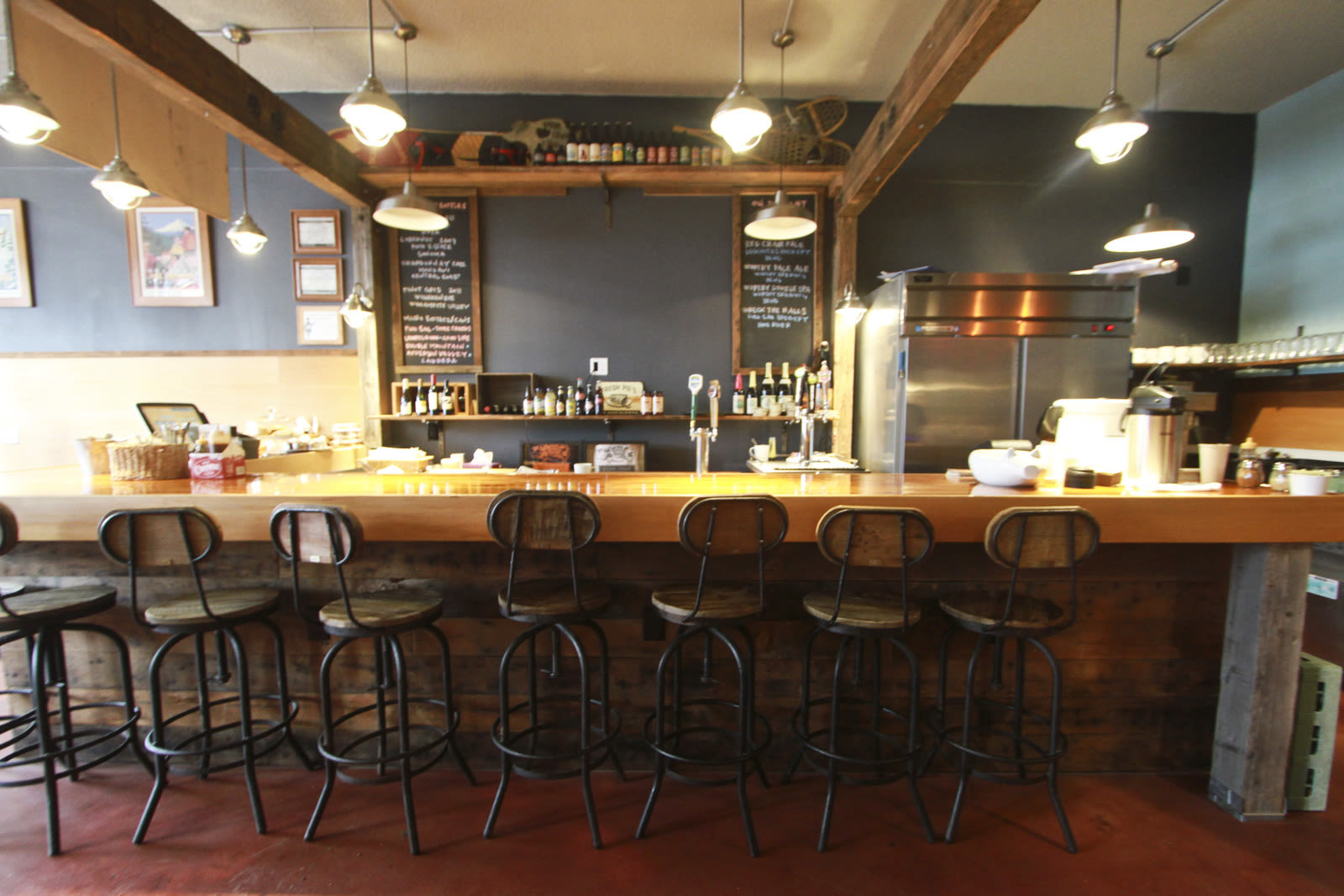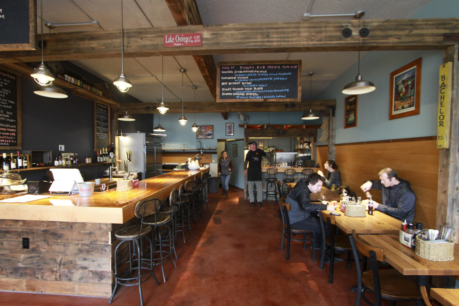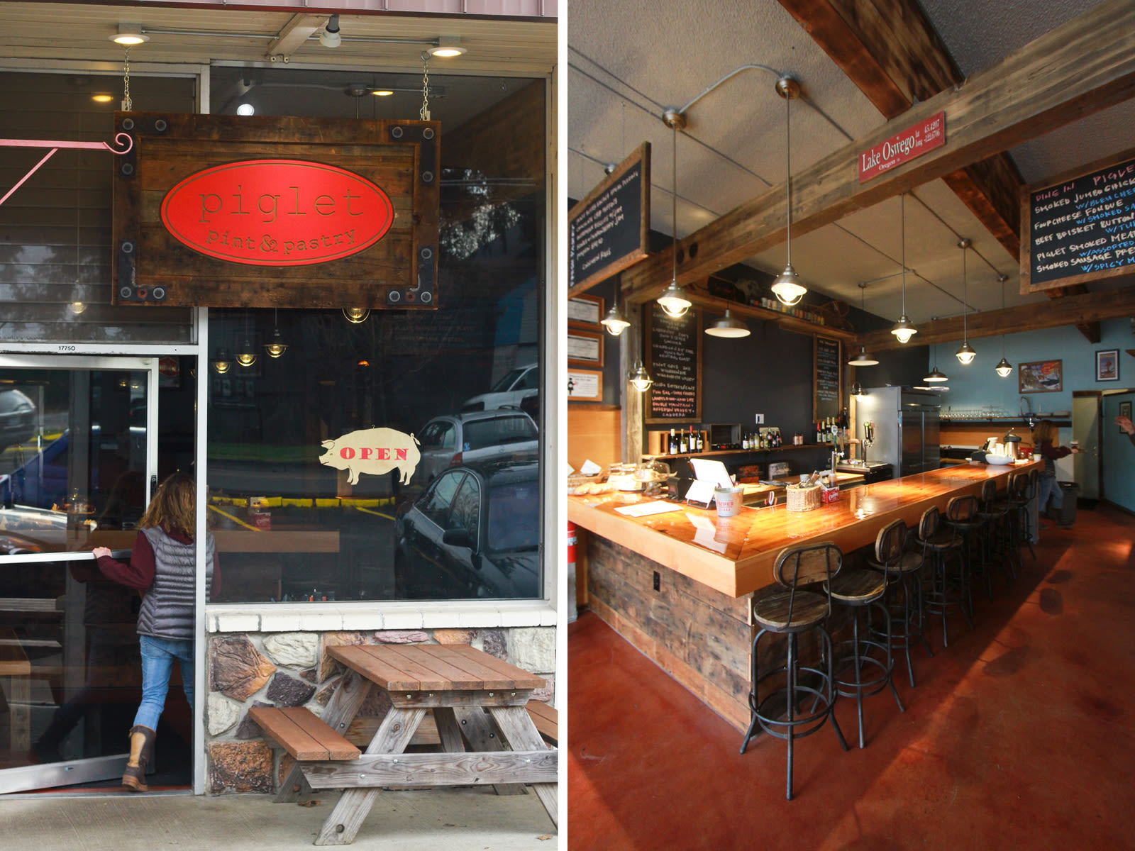 Summer can wait, at least for the fans of Lake Oswego's solid barbecue joint Pine Shed Ribs. Thanks to the debut of Piglet Pint & Pastry, the new bar, bakery counter, and dining room a few doors down from the Pine Shed's savory smokers and signature wooden takeout shack, some of the best BBQ in the metro area is now available for comfortable dine-in noshing year-round. The just-opened bar and dining room is nestled in an unassuming Lake Oswego strip mall, but the interior is pure Portland: think wooden beams and wood-clad bar boasting reclaimed lumber from the Rebuilding Center, industrial lighting and barstools, and a cozy wood stove that keeps the space warm during even the nastiest of drizzles.