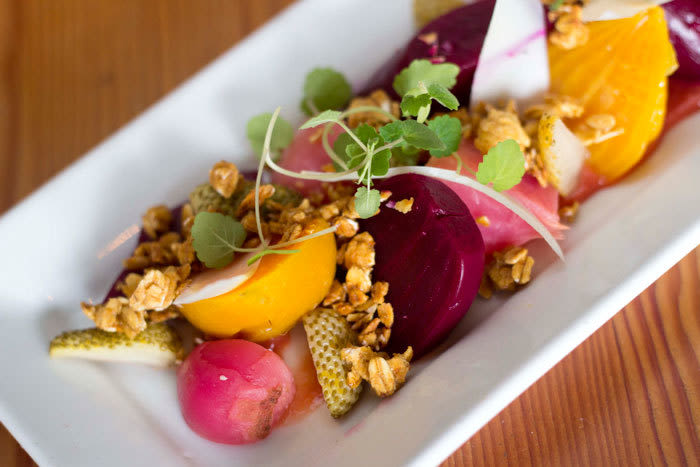 “Clyde is a beast…an animal,” explains Lamagna. “People have tried to wrestle with it in the past, but that’s the wrong approach.” Instead, Lamagna hopes to engage Clyde’s adventurous clientele with a new menu of daring “shared entrees,” from a whole baked branzino, stuffed with scallop mousse, to an entire pork trotter, deep-fried and served with buttery spaetzle. “I want to encourage people to eat together and try as many different flavors as possible.” We stopped in for a look at the new Clyde Common and its myriad of sharable new plates.