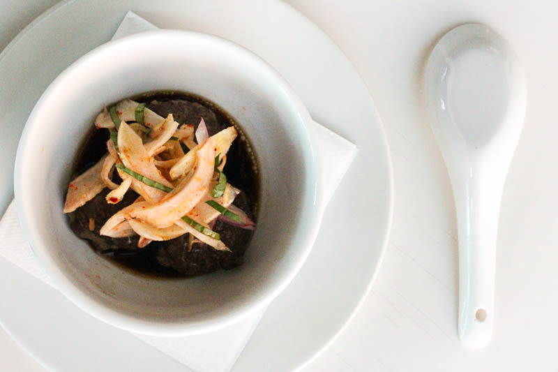 For more than two years, Smallwares chef/owner Johanna Ware has been making what she calls “inauthentic” Asian cuisine at her chic Beaumont restaurant. Diners, who have been enthusiastic about Ware’s creative vision, often refer to her dinner menu as genius—a true testament to her steadfast commitment to producing colorful menu items for their dinner and late-night service options. This summer, Ware introduces a new happy hour menu, offered seven days a week from 5 to 7 pm. The menu, which continues to break the bounds of traditional Asian cuisine, is comprised of all-new items, equally as colorful and, shall we say, unconventional as her regular dinner menu. She anticipates the menu items will change with the season and with her creative vision. The food items range from fermented bean pork meatballs to a cilantro pretzel hot dog to an oxtail curry bao—and all are available for $6 or less. The drink menu is diverse and just a tad on the sassy side, including a session beer topped with a spicy frozen margarita ("Draw Me Like One of Your French Girls) and a Bloody Mary with tequila, kimchi juice, fish sauce, and cilantro (the Bloody Mariah).
