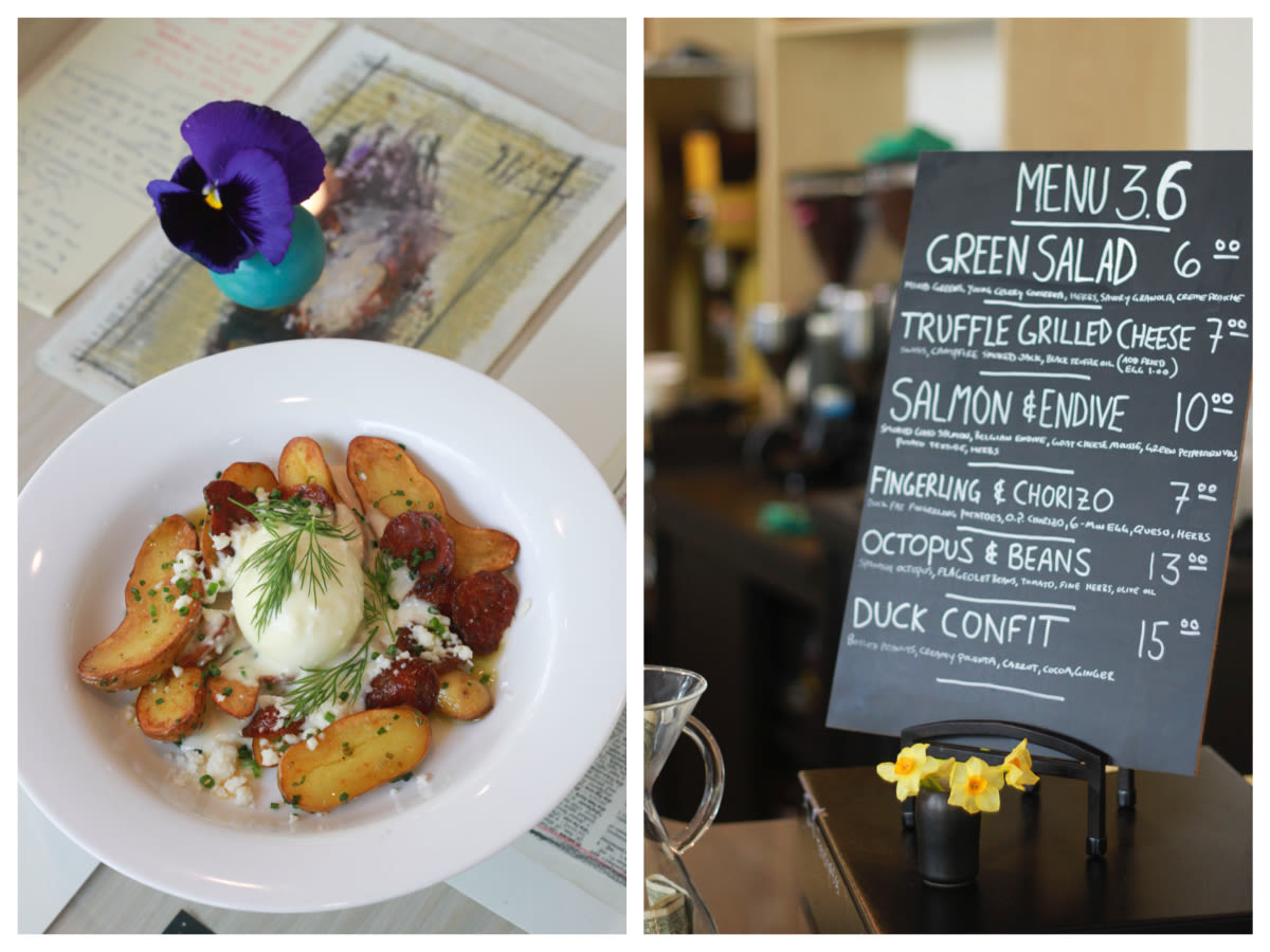 Glyph Cafe & Art Space has only been open for fourteen months, but it's already mastered the fine art of reinvention. Nestled on a shady corner of the North Park Blocks on the ground floor of PNCA's modern ArtHouse dorms, Glyph began life as a gallery space and tea-centric cafe offering a few casual sandwiches and cheese boards. Now, thanks to the craft of chef Doug Weiler, the small kitchen is churning out affordable, white-tablecloth-worthy plates for breakfast, lunch, and dinner. Owner and curator Sandra Comstock opened Glyph in January 2014 to offer a space for the visual arts, literary, culinary, and cultural worlds of Portland to come together over traditional tea service and simple fare inspired by her Fulbright travel to Bangladesh and Mexico. But as the chic space began to evolve with every poetry reading, First Thursday event, and board game gathering, the need for heartier plates beautiful enough to complement the art on the walls and in the glass display tables prompted a change on the menu. Today, Weiler (a new PDX transplant from New York's Roots Bistro Gourmand) and his culinary team are drawing seasonal inspiration from the Portland Farmers Market and visual inspiration from the art on display around them to craft daily-changing menus that could rival the price point of any downtown lunch joint and go toe-to-toe with some of the prettiest plates in town.