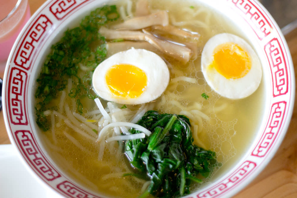 Order at the counter, where you’ll find a pared down menu of thick, springy ramen, with shio (light and salt-flavored), shoyu (soy-sauce based), miso (hearty, miso-spiked), and vegetable (made with umami-rich mushroom broth). Add-ons include soft-boiled eggs, pork belly chasyu, and classic chasyu (more like Chinese “red” barbecue pork shoulder). Beyond, a few greatest hits from Biwa, like the kara age (potato flour-fried chicken), gyoza, and an “80’s salad” with broccoli, carrot, lettuce, almonds, and citrus.