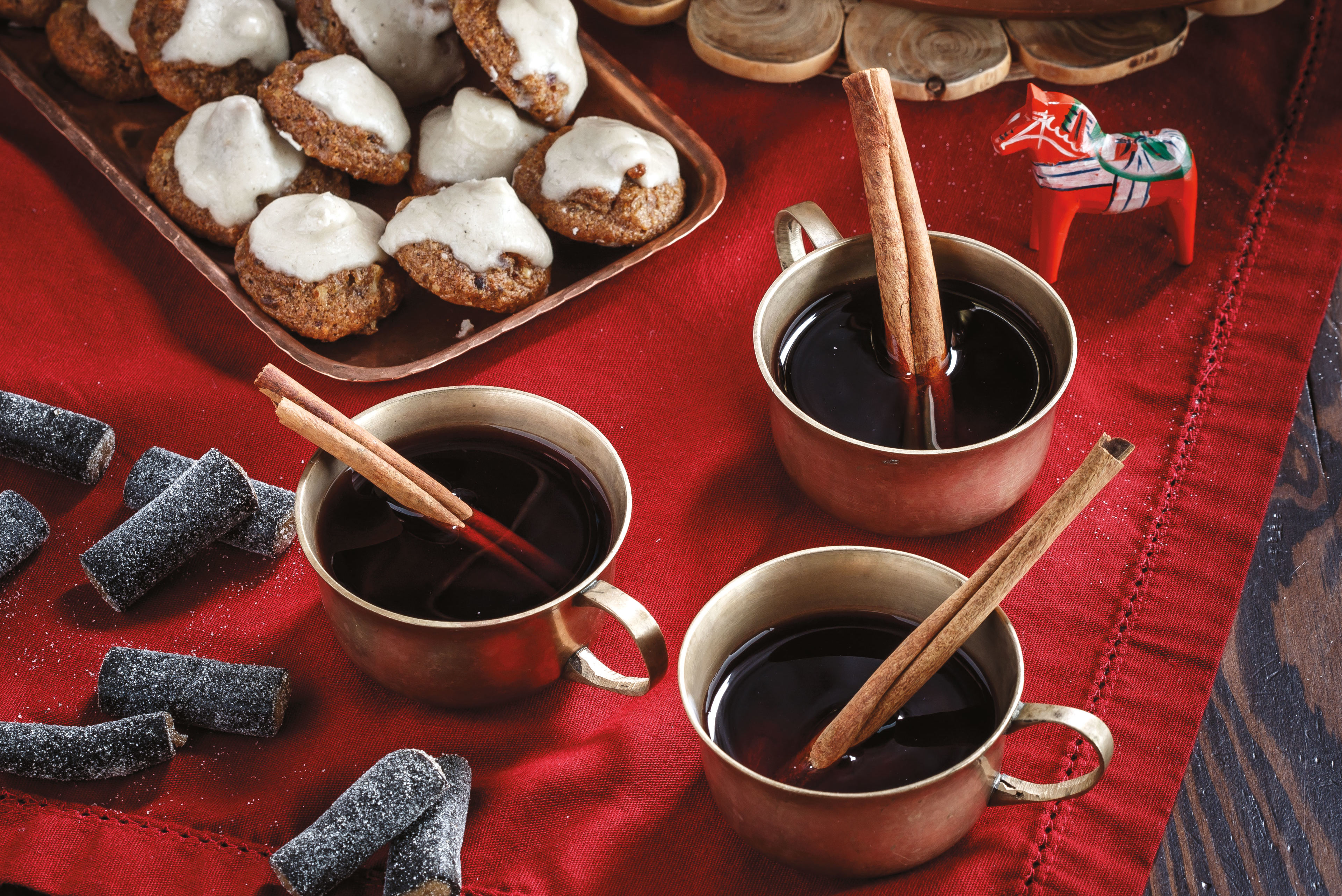 What might you find at a Scandinavian julbord? One sure bet is jul glögg, traditionally served in small, handled mugs, alongside spiced cookies and, perhaps, Dutch black licorice.