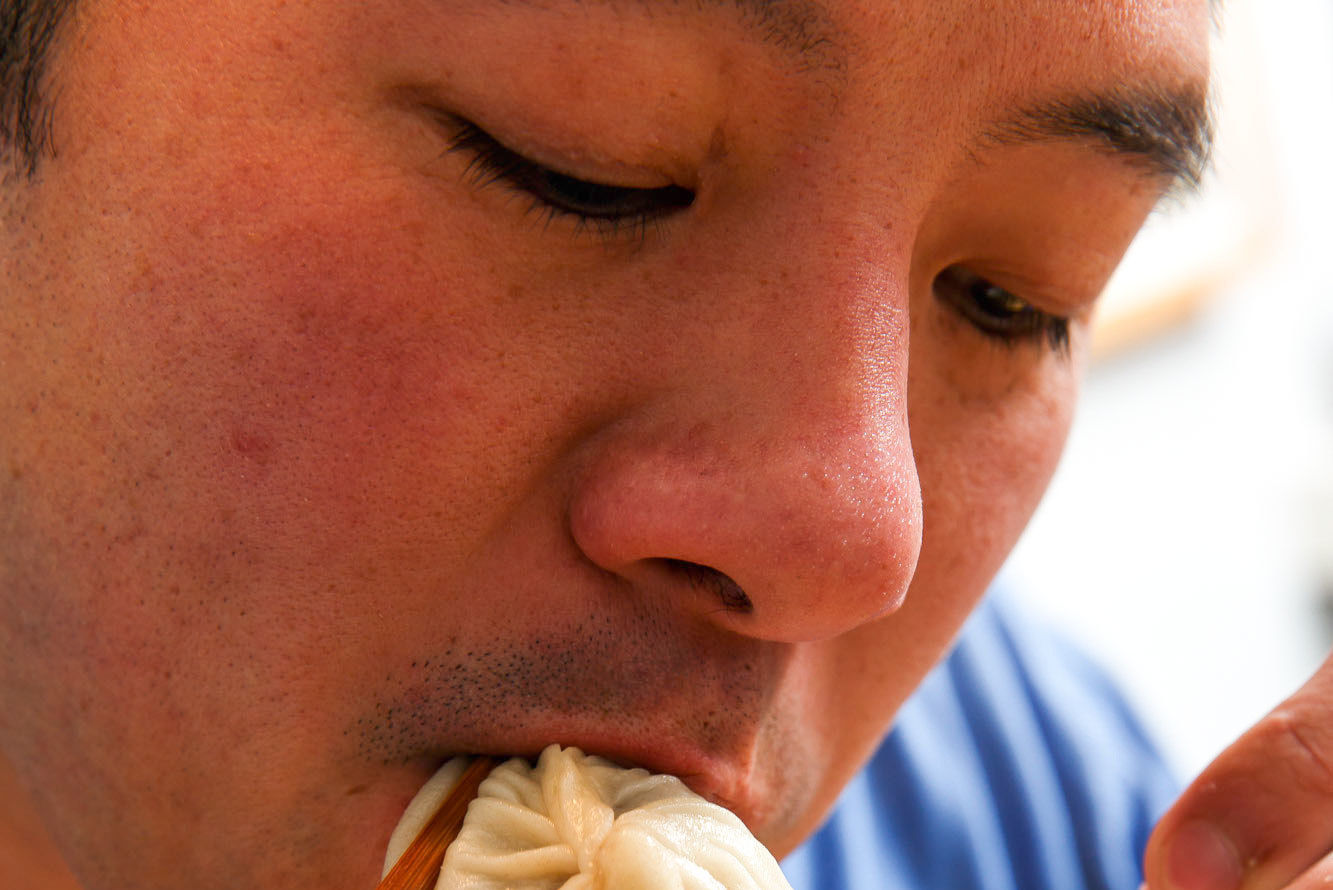 Everyone has their own technique for (very carefully) tackling the scalding dumpling. Here’s what Shen recommends: Place cooked dumpling in a soup spoon. Bite a tiny hole in the skin and let the soup pour out. Remove the dumpling and drink the soup. Place dumpling back on the spoon, dunk in XLB sauce (¼ cup light soy sauce, 2 tbsp white vinegar, 1 tbsp ginger cut into matchsticks about ⅛-inch thick). Eat in one bite.