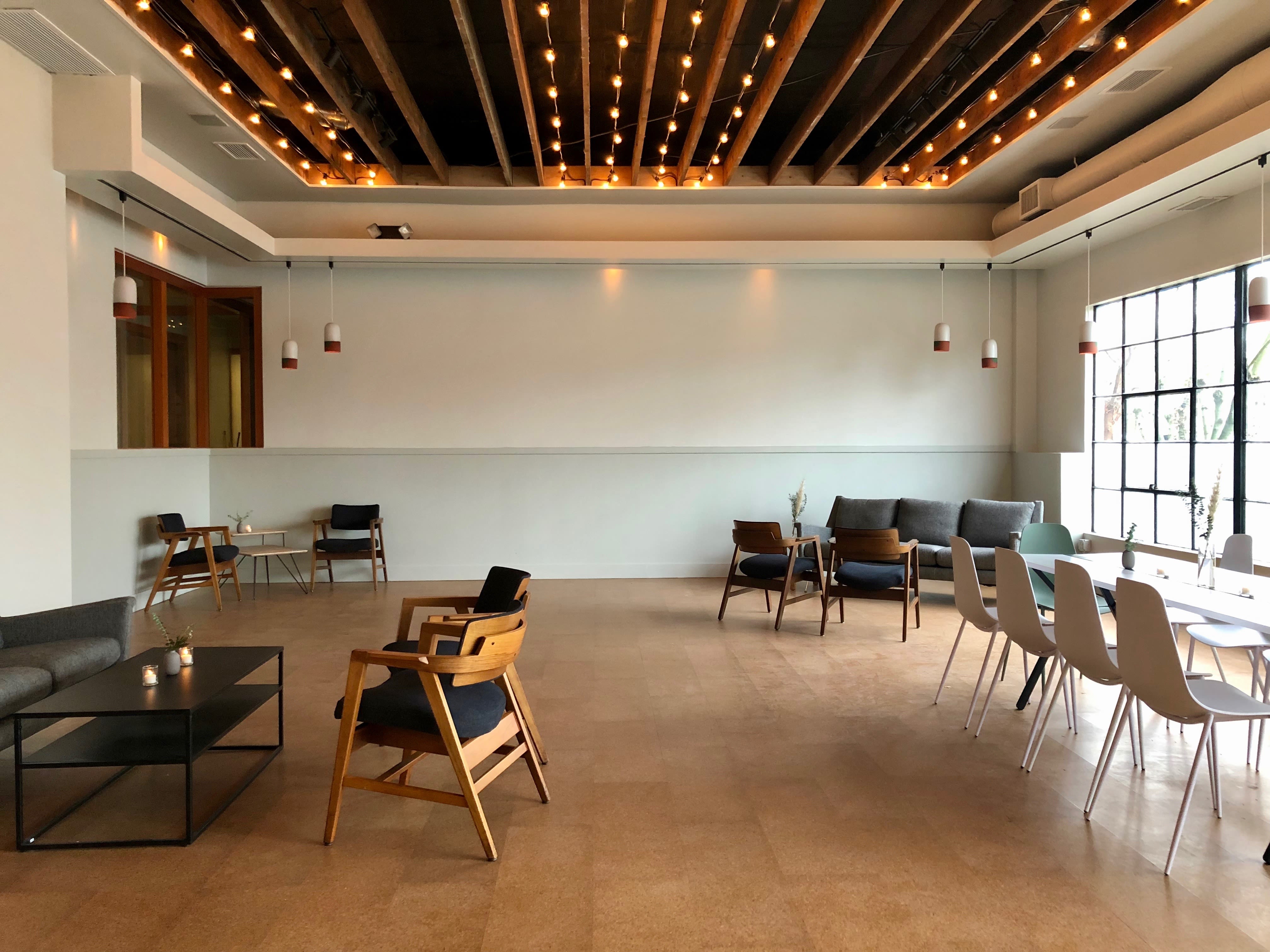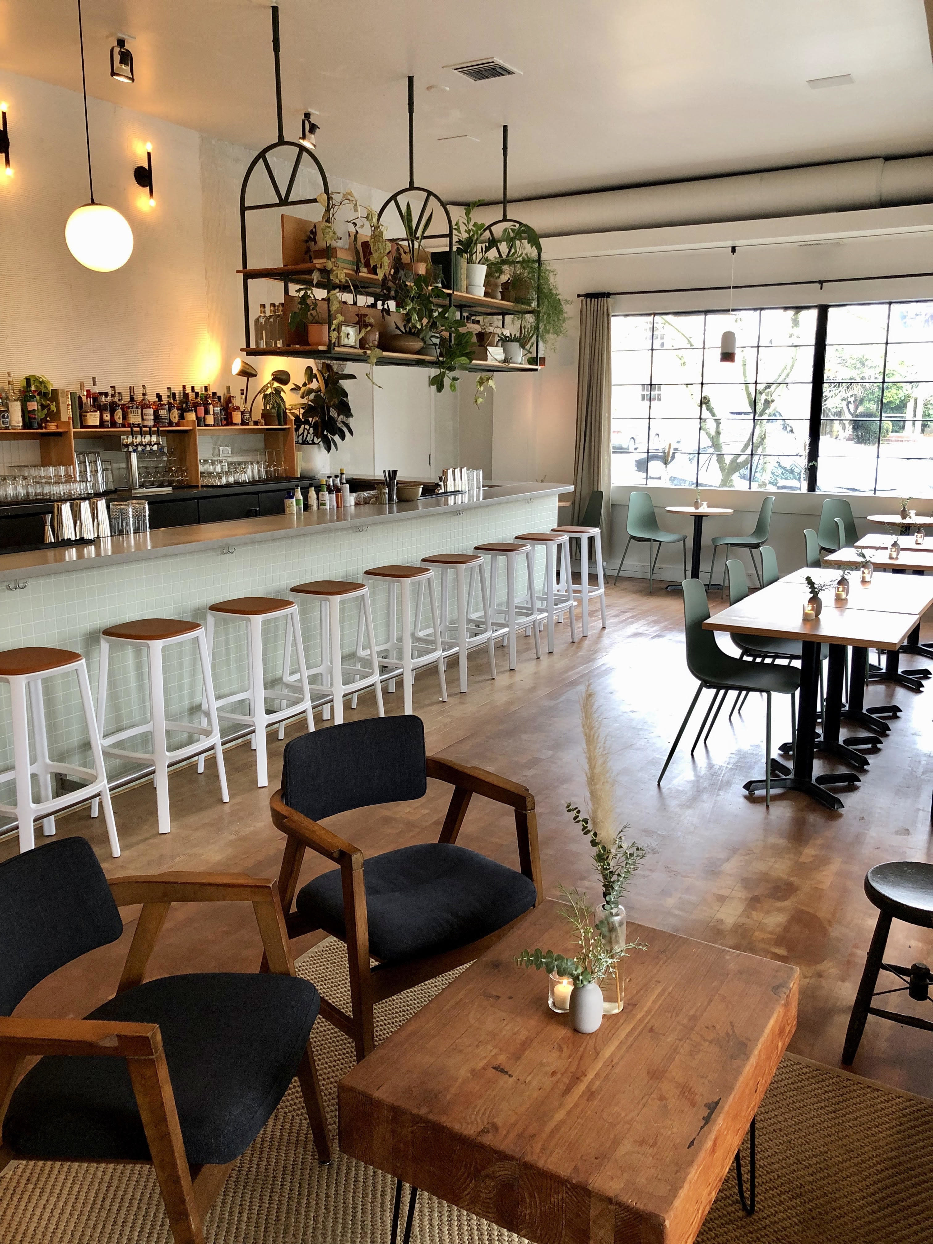 The 40-seat restaurant-bar fills those big, Wildwood shoes with bright, white walls, a wavy, raked plaster bar, and plenty of greenery. The private event space in back, formerly Wildwood’s dining room, now has cork floors and exposed wooden beams.
