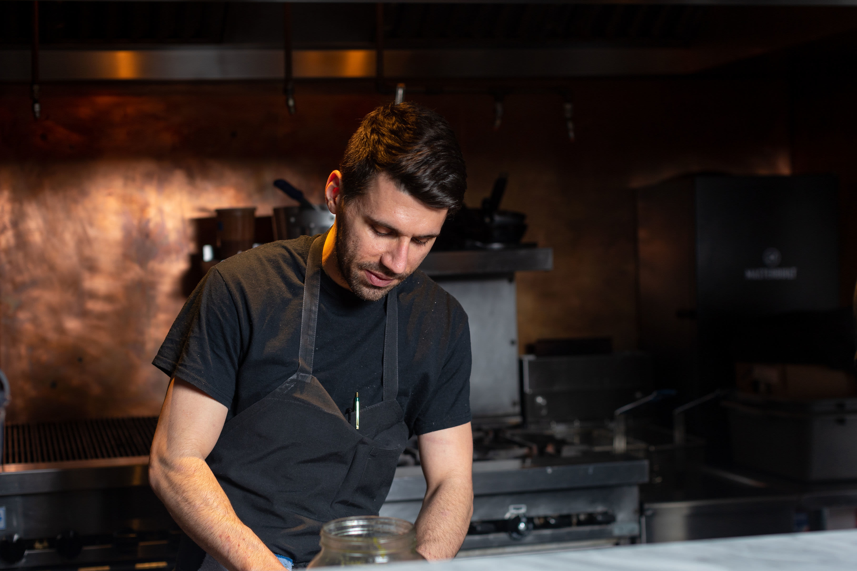 "There are elements of Biwa still here, like the copper backsplash," says Klus. That backsplash now frames chef Tim Artale, who previously cooked at Portland favorites like La Moule, Aviary, Proud Mary, and St. Jack. Artale's menu, developed in consultation with his old boss Aaron Barnett—aims to be restrained, elegant, and highly crafted. He plans to infuse everything from starters to large share plates (like a whole Thai snapper with tomato ginger beurre blanc and green papaya) with his proprietary spice blends, house-made vinegars and nut milks. A peek at Artale's sample menu promises dishes like black trumpet fettuccine, grilled octopus spiked with jalapeño, and fried brie with verjus syrup, pumpernickel, and pistachio.