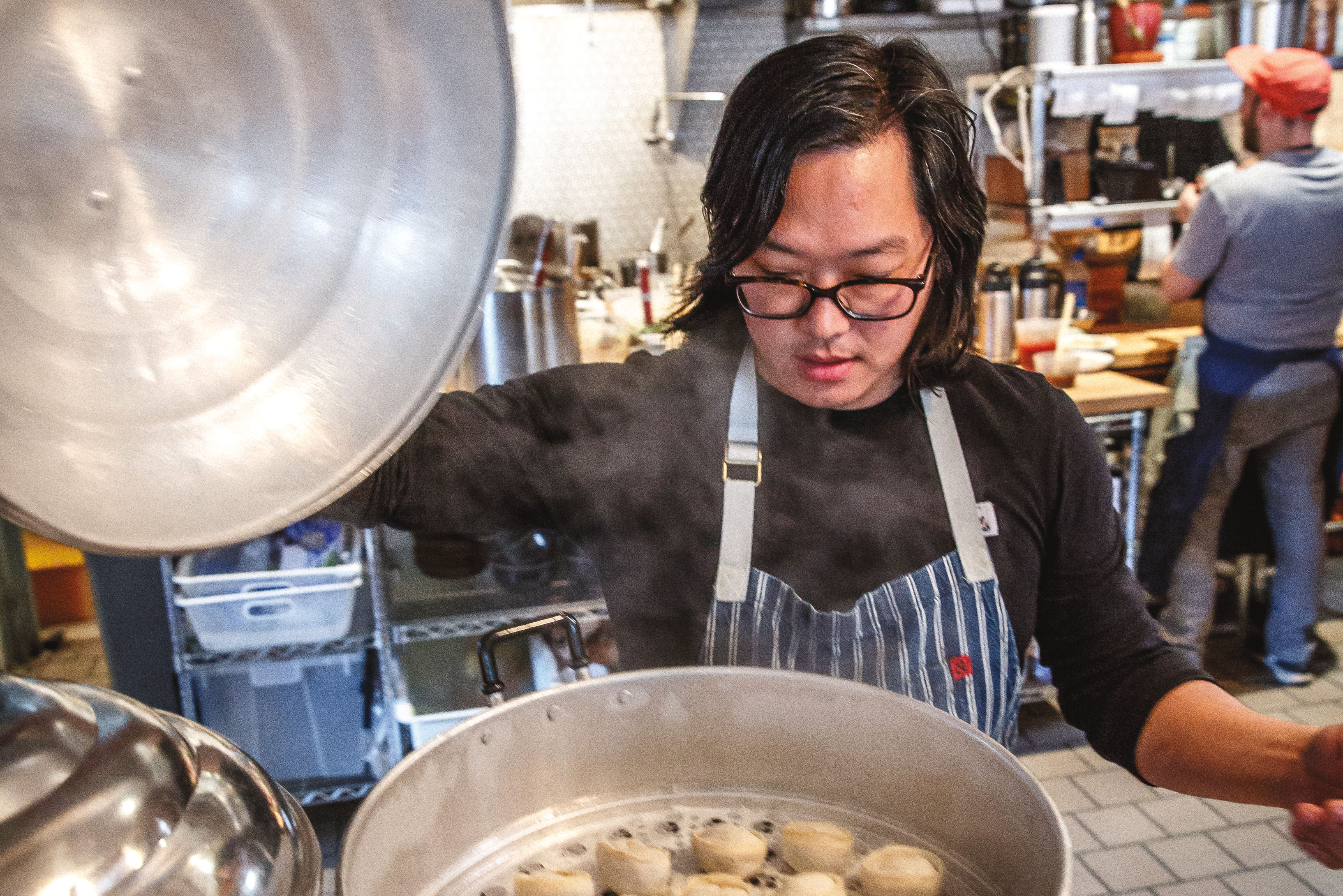 Nearby, Peter Cho, the fun-loving chef at the couple's Han Oak, is bustling through the room in an orange knit cap and sneakers, clutching a giant basket of Korean potato chips. His aim: to add a personal touch to a fancy tin of Astrea caviar, glistening with big, bronze-colored pearls. A visiting chef-friend brought it to a Han Oak pop-up last fall, and Cho was hooked. Now, chips and caviar, an optional $85 add-on to the new tasting menu, exemplifies how PoMo's 2017 Restaurant of the Year blends high-brow and low, good ingredients and goofy-good taste—in the most genuine way.