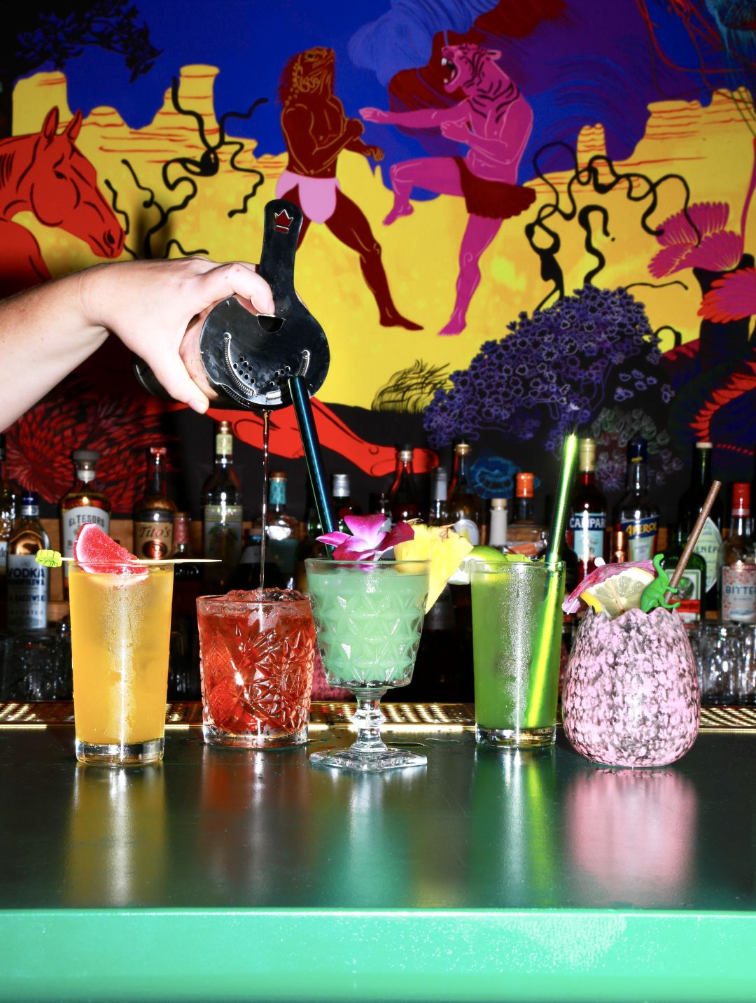 House cocktails and slushies get giddy with saturated colors and playful garnishes