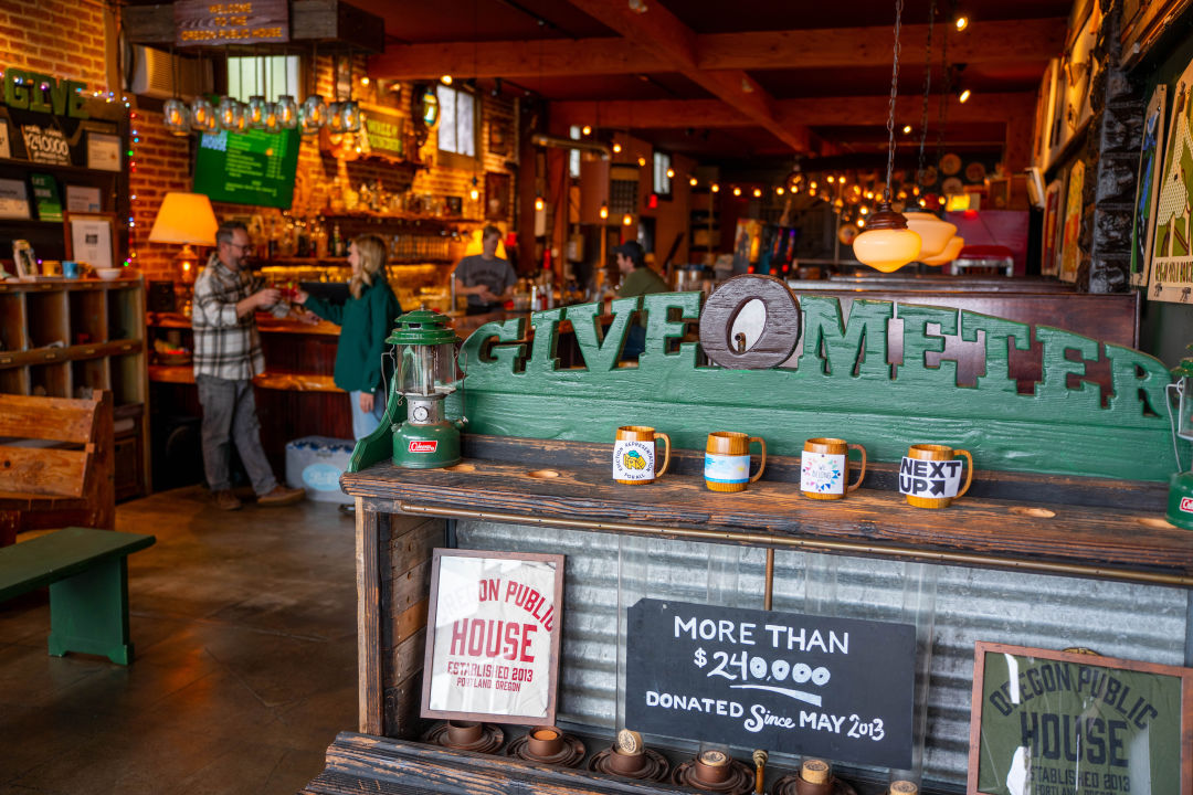At the cash register at Oregon Public House, customers are faced with a choice: which charity should the profits from their orders go to? The philanthro-pub has donated nearly $250,000 to local charities so far. The idea grew out of the 2008 recession, when charity donations slumped, but bars were still profitable. And so founder Ryan Saari leased a restaurant and bar, with a downstairs party and event space for 50 people and the 300-person Village Ballroom upstairs. The pub opened in 2013; prepandemic, it was donating $2,000 per month while providing competitive pay with health care and retirement benefits. Saari and the board are volunteers. “Prior to COVID it worked out great,” says Saari, who is a church pastor by day. “We’re all about the idea of giving back as a celebratory and community thing.”