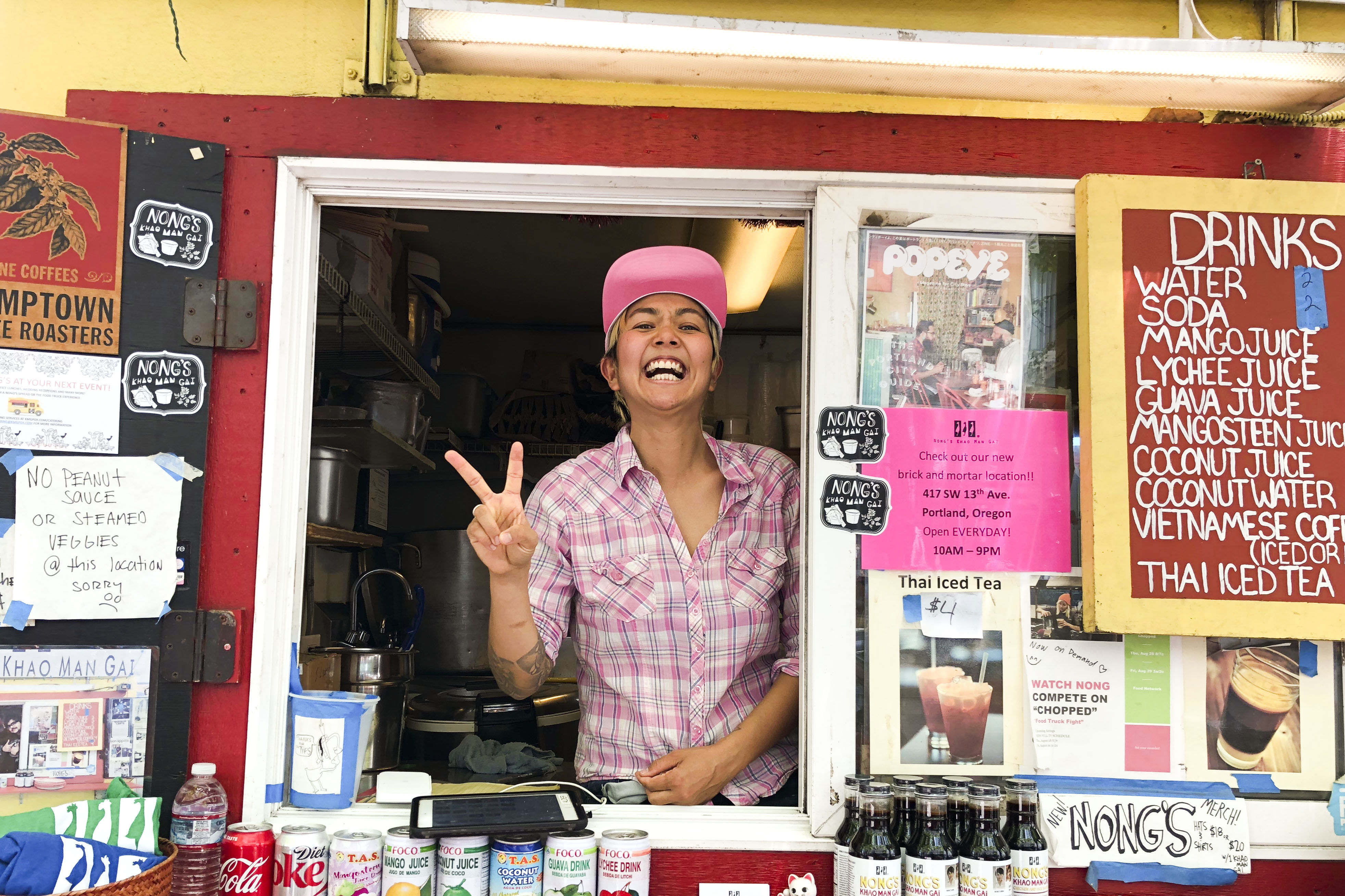 Nong Poonsukwattana achieved folklore status in Portland after arriving in town with $70 to her name and creating an empire of Thai-Chinese chicken and rice. Though her original food carts have closed, her two busy counter service restaurants serve hundreds of carefully wrapped paper parcels every day. Inside, the eponymous khao man gai: chicken and rice served with a cup of simmering broth, fresh cucumber and cilantro, and her legendary ginger sauce. The dish may seem simple, but it’s more than the sum of its parts: Nong’s chefs poach the chicken with pandan leaves and ginger, yielding tender meat and clear, flavorful broth. They then toast the rice in chicken fat and steam it with pandan. You can get the dish with peanut sauce and broccoli; swap out the chicken for tofu, vegetables, or pork; or enjoy the chicken and rice served as a soup, but the original khao man gai reigns supreme. —AF