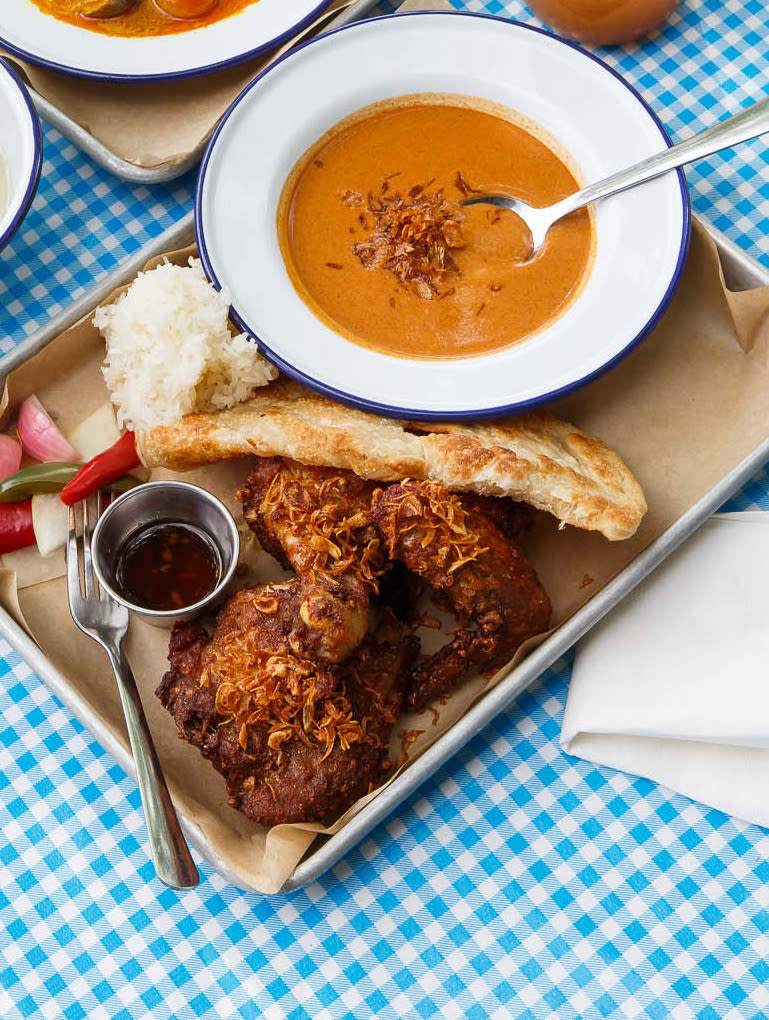 Portland loves its Thai food and its fried chicken, so when Akkapong “Earl” Ninsom and Alan Akwai opened Hat Yai in 2016 it was an immediate hit. There’s plenty to love here—brisket curry, oxtail soup, an incendiary ground pork salad—but it’s hard to skip the fried chicken combo. A light, shatteringly crisp rice flour and tapioca breading spiced with coriander and dotted with crunchy shallots envelopes the moist and juicy bird. On the side, flaky, buttery roti and a bowl of Malayu-style curry so earthy and unctuous you’ll want to pour it over the whole feast. A few eye-watering pickled veggies provide a palate cleanser between mouthfuls of chicken and roti. —AF