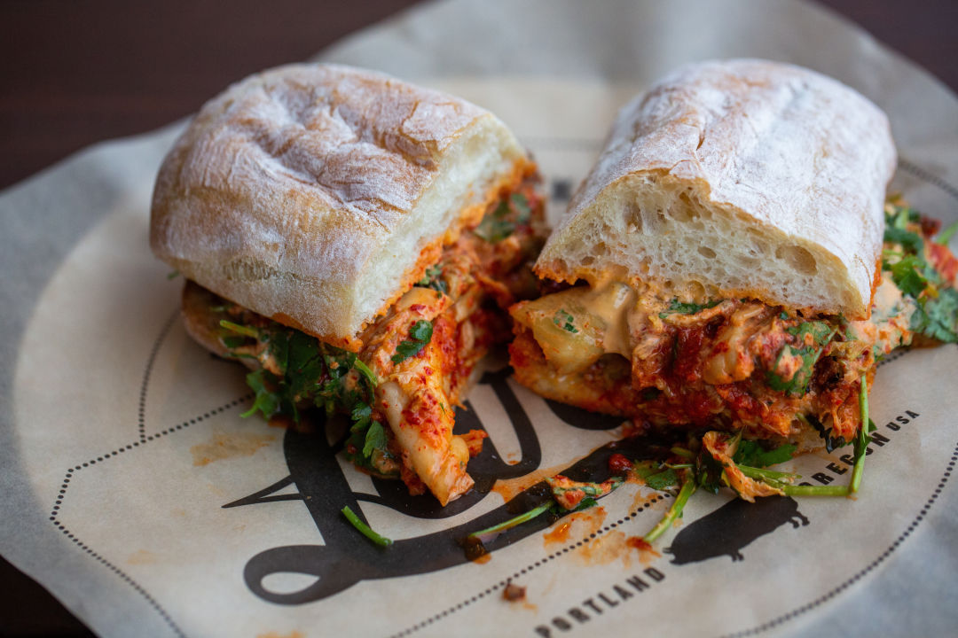 There was a time before Lardo, a time when kale and seitan were more ubiquitous around these parts than pork belly. But then Rick Gencarelli opened his bombastic sandwich cart, now a brick-and-mortar on SE Hawthorne. Throughout Lardo’s multiple iterations and locations, its flagship sando brought in the crowds. Succulent pork belly, peppery kimchi, and a creamy, slightly spicy chile aioli come together with a sprig of cilantro on grilled ciabatta for a sandwich that drips down your wrists with each hedonistic bite. Order it with a side of “dirty fries”—french fries buried in pickled peppers, pork bits, and parmesan—to get your weekly sodium intake in a single meal. —AF