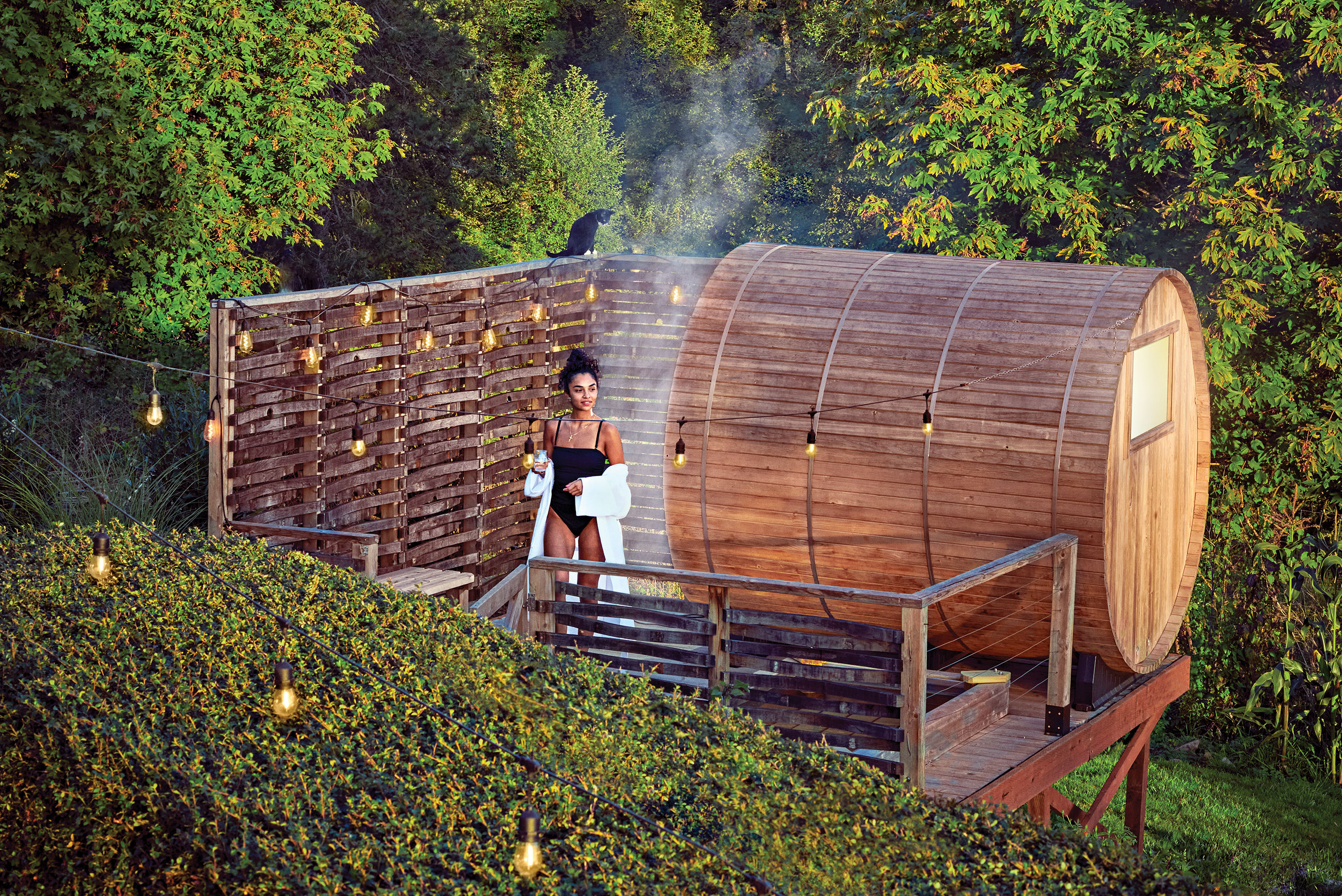 The more traditional type of Finnish sauna, with a small hearth below the stones that creates intense radiant heat. Once upon a time, woodsmoke stayed within the room. These days, almost all use chimneys to keep the heat and ditch the soot. The temp: 170–210 degrees Fahrenheit. Pros: Unmatched vibes—it’s hard to beat the coziness of a flickering fire. Cons: Finicky temperature control, and things can get hot fast. Also, the effort of keeping a fire alive. Try it out: Connect Wellness, Gather Sauna House (Central Oregon).