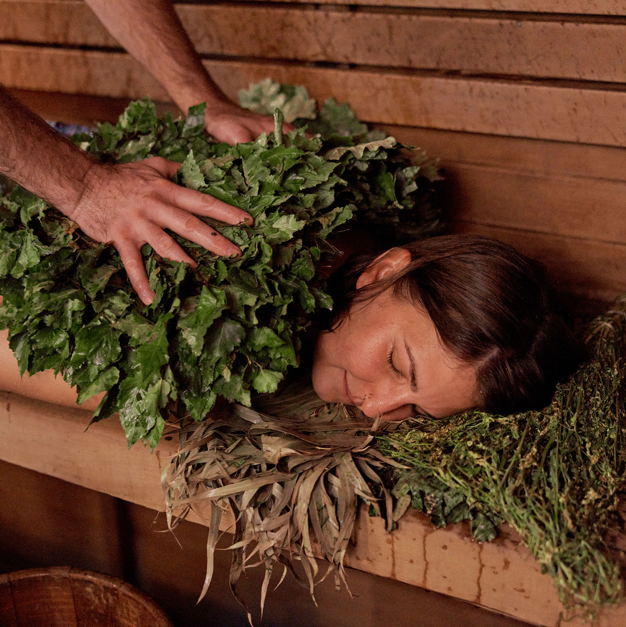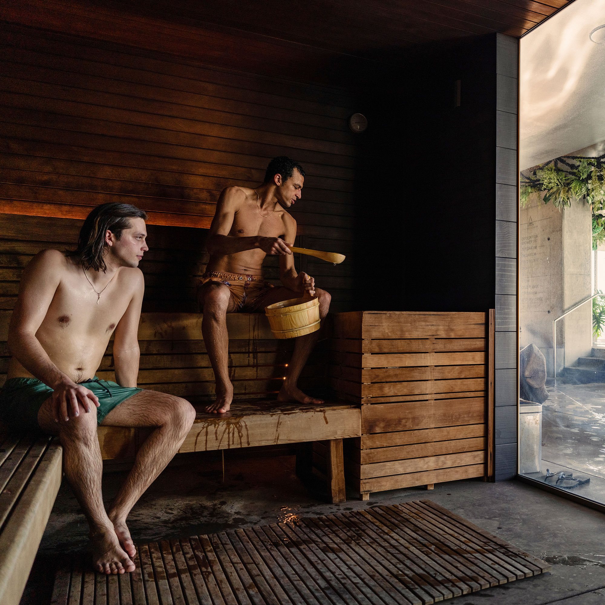 Pouring water on sauna rocks to create steam, known as löyly in Finnish, is a fundamental part of the experience. But everyone’s humidity tolerance is different, and it’s hotter on the upper benches compared to the lower ones. It’s polite to ask others in the room before adding water to the rocks (typically between three or four ladles’ worth).