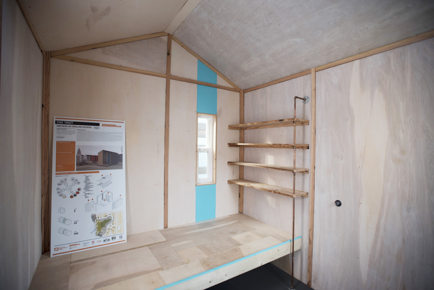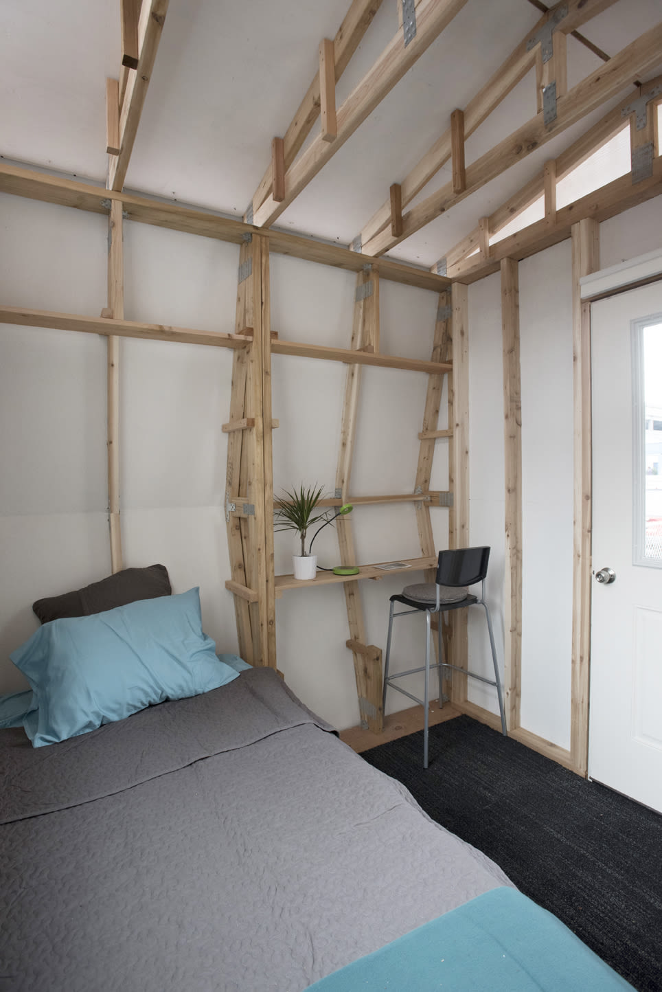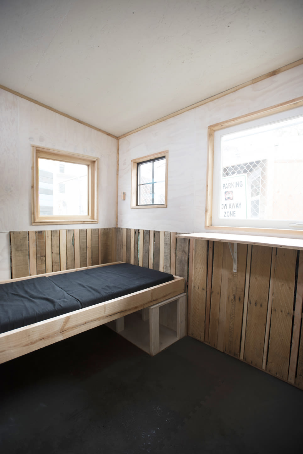 A North Portland warehouse served as the construction site for the 14 sleeping pods, each one no larger than 8-by-12 feet. Inspiration and conception varies greatly from pod to pod, including the one made by CPID fellows, which was fashioned entirely from reclaimed materials, and each is a marvel of cutting-edge design in its own right. The prototypes are not unlike the tiny homes of recent craze, which Palleroni says is part of the point. “Maybe people will go by [these pods] and think, ‘God, I want to live in a community like that.’ We want to dignify the situation to the point that [a pod village] will be a desirable thing for the neighborhood.”