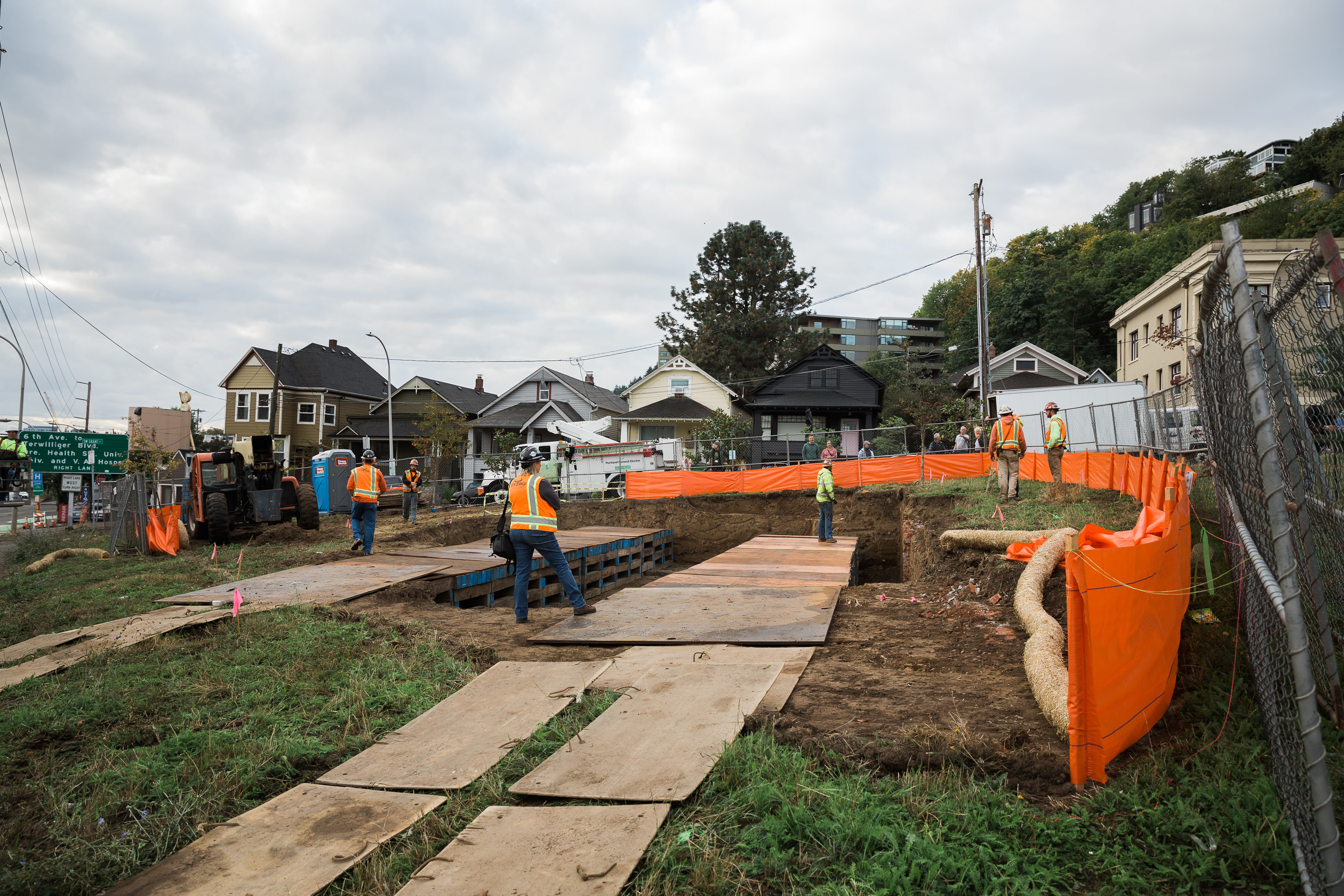 Once they landed on a suitable site and secured an agreement from the city and Portland State University, workers cut the house into two pieces, disconnected it from the foundation, and towed it, every so slowly, through the Park Blocks. $444,000 and two days later, the house arrived at its new home at the intersection of Southwest Broadway Drive and Grant Street, currently owned by the Portland Water Bureau.