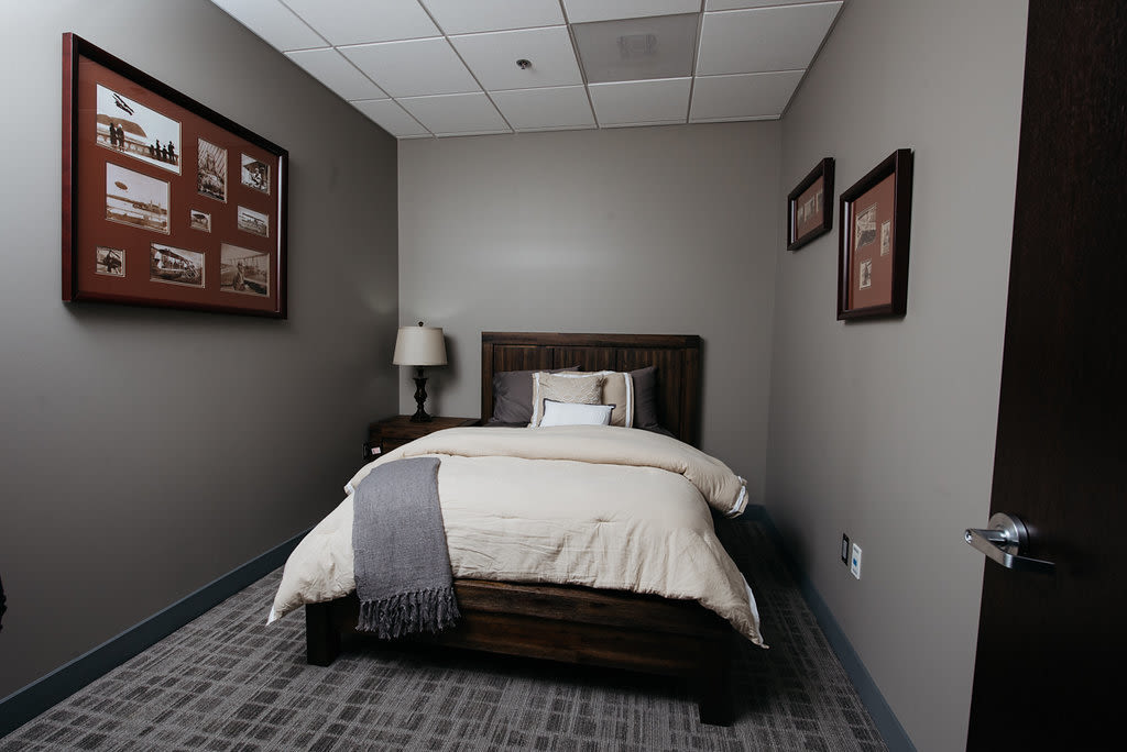 Walking into the high-ceilinged lobby off Airport Way is an experience starkly different from the bracing bustle of PDX’s public terminal. The room is spacious but warm, with cushy seating and fireplaces. The staggered service counters bring staff shoulder to shoulder with passengers instead of face to face. Atlantic even uses a signature scent, which contains—no joke—a hint of jet fuel. The two hangars, stark white and immaculate, evoke the clean room in an Intel factory. One-third of the space in the main building is devoted to dedicated lounges, storage, and even bedrooms for pilots and line technicians, which serves to keep staff healthy and rested.