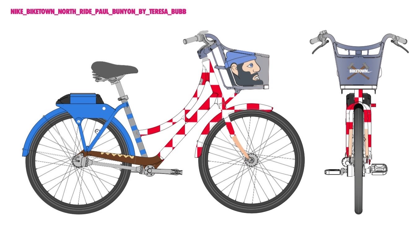You may recall that back in February, the city's Nike-sponsored bike share program launched the Biketown Design Challenge, asking artsy citizens for help rebranding its fleet of bright orange rigs. Now you can see what Portlanders dreamt up, from a Paul Bunyan-themed number to one inspired by the 1977 Trail Blazers.