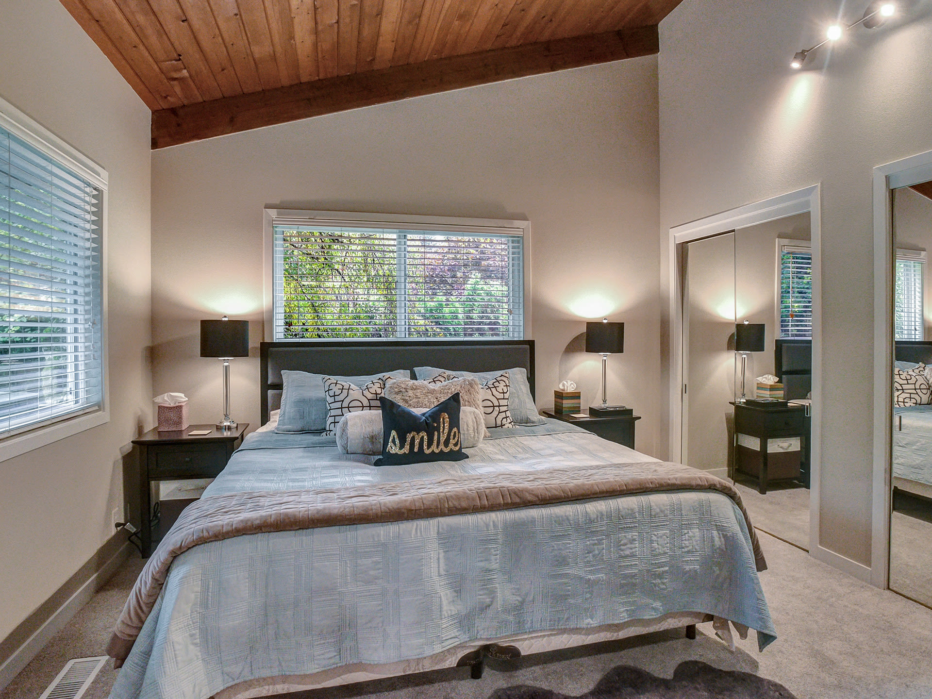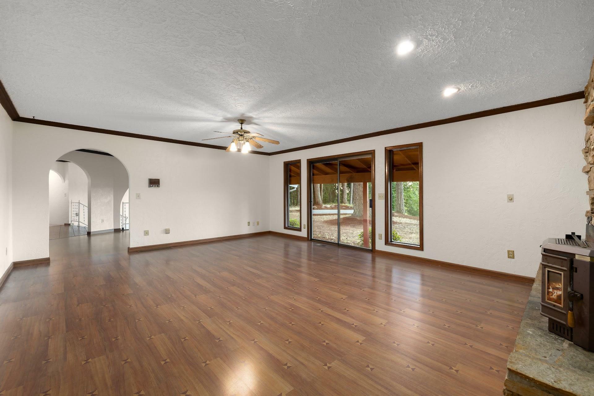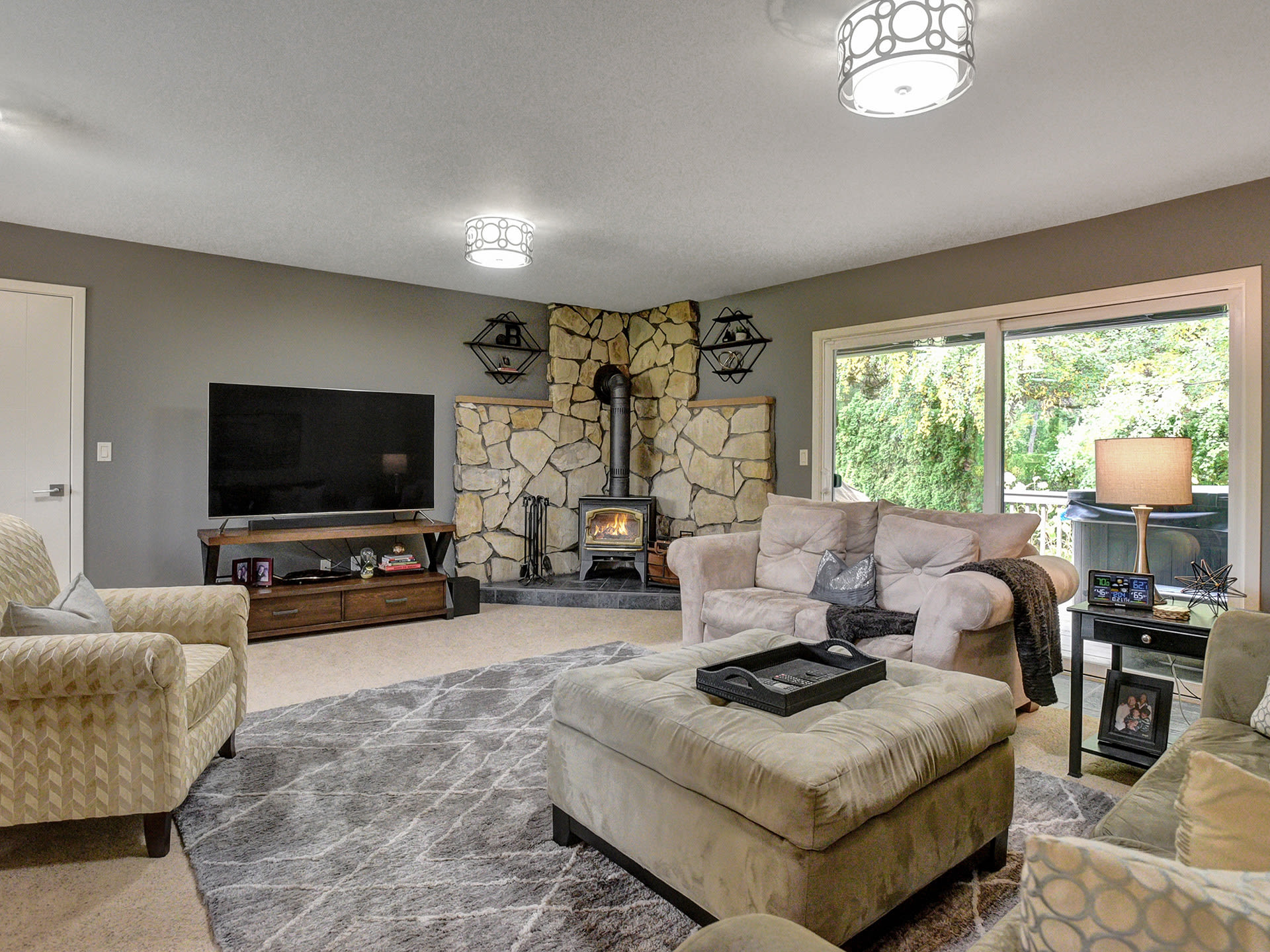 Built in 1968, this single-family home has been updated to reveal its inner glamour. You walk into the house and enter first into a cozy living room complete with a wood-burning fireplace, access to the garage, and sliding glass doors that open to the back porch and hot tub. If you didn’t turn into the living area, then you enter into the completely renovated kitchen with quartz waterfall countertops, breakfast bar, and vaulted ceilings that continue throughout the dining and living space. Down the hallway are three bedrooms, two of which have sliding doors onto the back porch, and the third being the master bedroom with an en-suite bathroom. Downstairs is a large living space with a spacious bedroom attached to the third bathroom, as well as the final bedroom that could double as a den. Outside is a detached garage that can fit a boat, RV, or any other big toys that you can use to explore the nearly two-acre property.