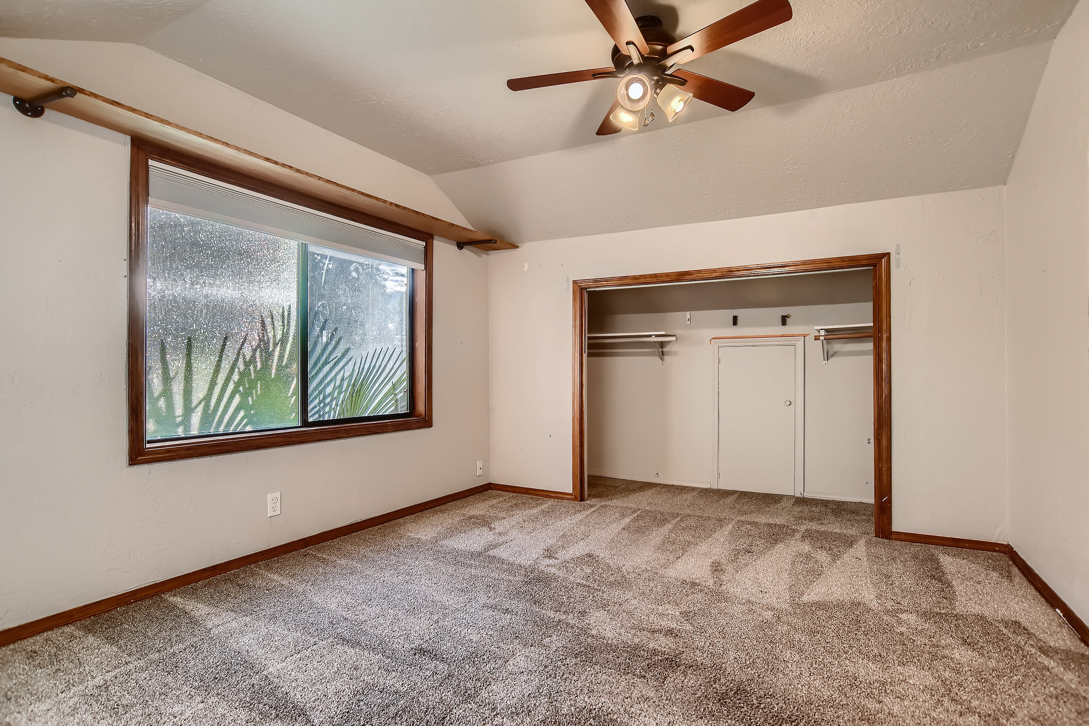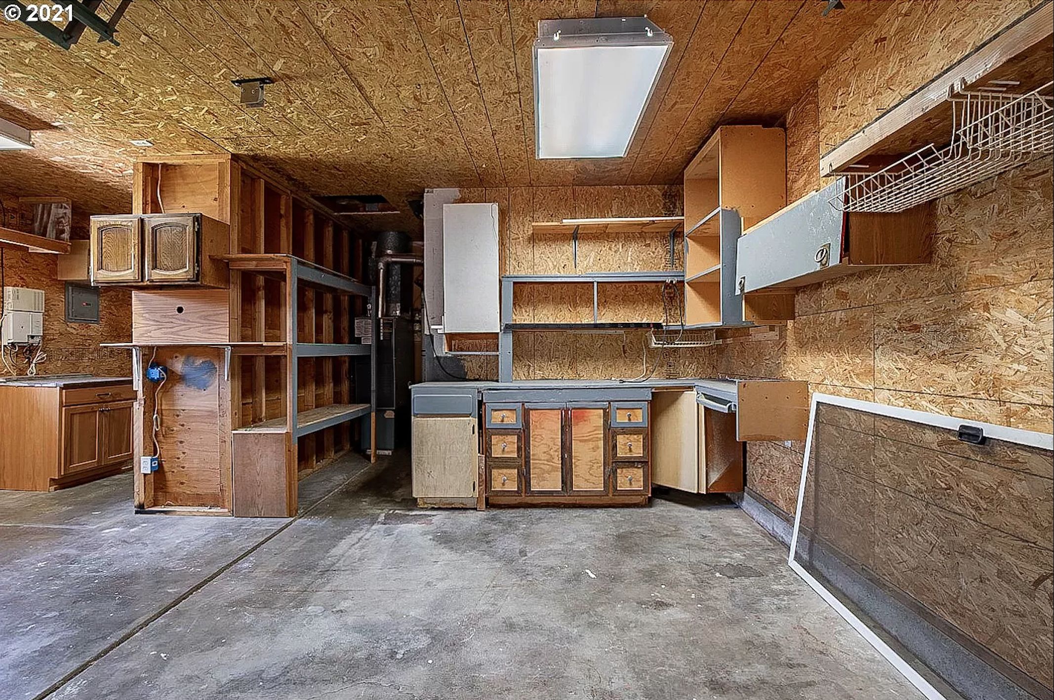 The stone fireplace is the center of the living room in this circa-1950 home in outer SE Portland; the generous kitchen features lots of counter space and a built-in breakfast nook. The master bedroom and a full bathroom are also on the first floor; upstairs, there are two more bedrooms, both with plenty of closet space, and another full bathroom. The house also has an attached garage and a fenced-in yard.