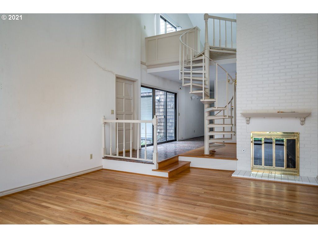 This townhome was built in 1970 in the Mountain Park neighborhood of Lake Oswego. You can enter the property through the gated courtyard or through the detached two-car garage. Walk through the front door and turn right into the sunken living room with a brick fireplace and sliding glass doors that lead to a small patio area. Next to this space is a spiral staircase that leads to the spacious upper living area with a second fireplace. To the left of the front door are floor-to-ceiling windows that look into a natural atrium, and farther along is the large formal dining area, that could also be used as another living space. The kitchen is right next to the dining space and through the kitchen you’ll find a second, smaller dining area that has a built-in pantry and desk as well as sliding glass doors that open to a patio. You’ll find the main bedroom and its en-suite bathroom off of the living room. The second bedroom has sliding doors to the courtyard, and the third comes with built-in closet storage and floor-to-ceiling windows that look into the atrium. This townhome is a part of a community that offers many amenities including a fitness center, pool, recreation facility, and more, and is right next to paved walking trails.