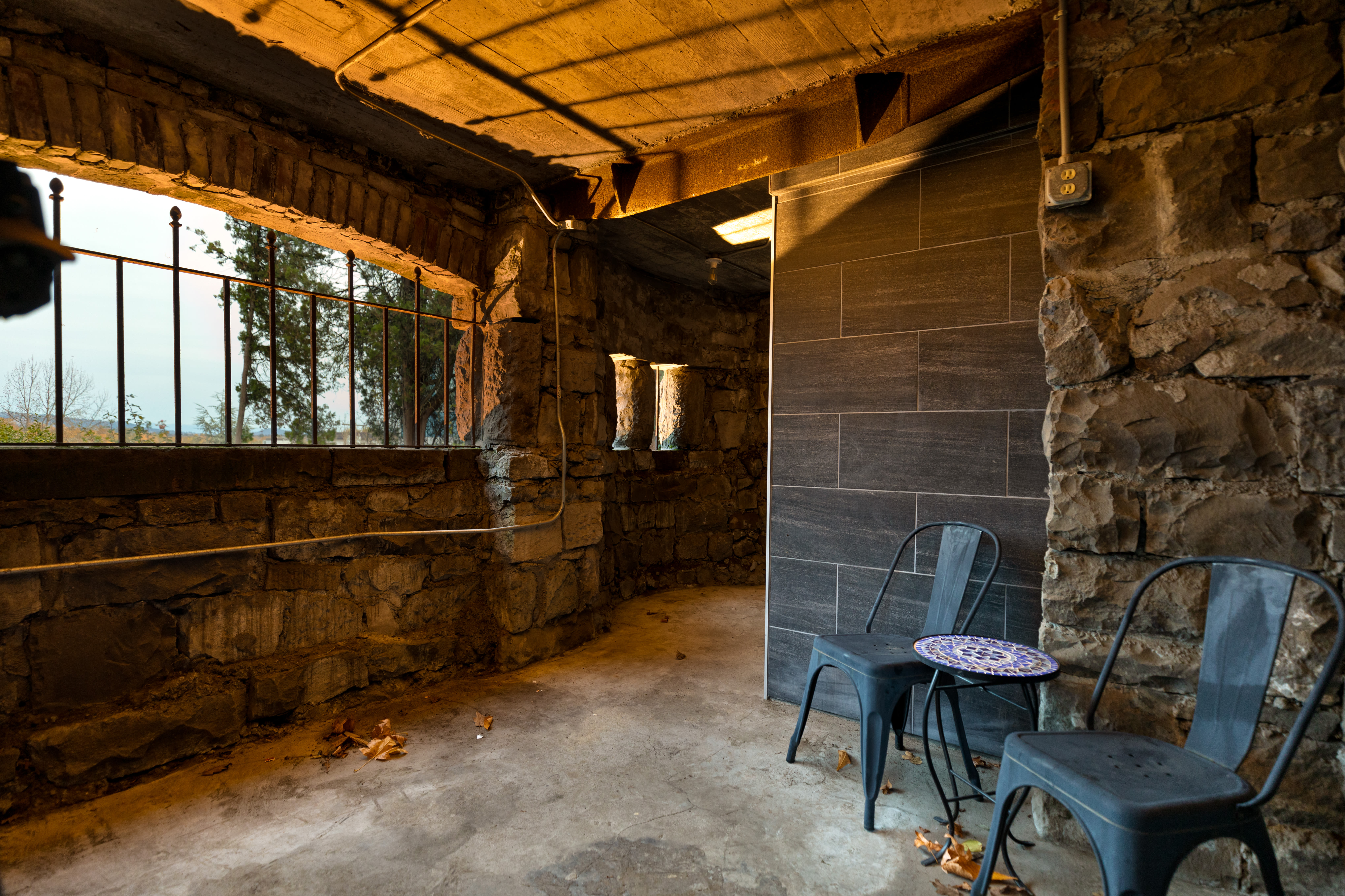You enter the home into a front living space that features a marble fireplace surrounded by stained-glass windows, and a dining area on the opposite side with French doors leading outside. You continue into a living space at the foot of the staircase that leads into the beautifully renovated kitchen complete with a breakfast nook. Past the kitchen, you’ll find a full bathroom and the first of four bedrooms. Upstairs you’ll find the primary bedroom that leads to the large balcony that has an incredible view of Mount Hood, as well as an en-suite bathroom. Down the hall are two other bedrooms and a third full bath with a clawfoot tub. There is a living and entertaining space, the final bathroom, and a wine room on the bottom floor, as well as a sitting area beneath the front entrance with serious dungeon vibes. Outside the house, you’ll find a manicured and fenced-in lawn in addition to a swimming pool, hot tub, pool house, and separate building that can be used for anything your heart desires (private office, art studio, yoga studio, etc).