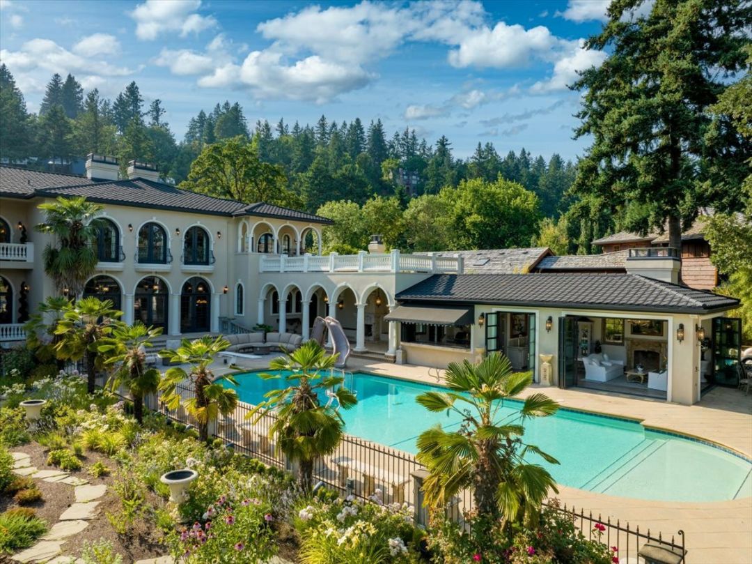 Let’s get straight to the extravagance of the 19,444 sq foot residence that sits on 2.9 acres on the banks of the Willamette River on SW Fielding Road. The 9 bedroom, 11 bathroom home has a billiard parlor, a crow’s nest reading room, a pool house with an indoor BBQ area, a whiskey library, a deepwater dock and boat lift, and a ballroom that "easily converts into a screening room."