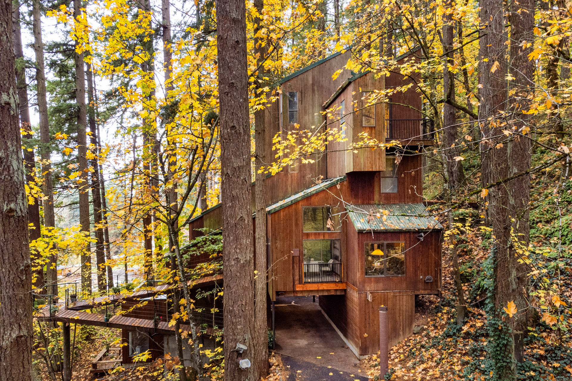 Yet, wrapped head to toe in vertical cedar, including the garage door, the house does more to blend in among the surrounding trees than stand out with its unique shape. That fits with the Organic architecture ethos to "respond to its environment, rather than impose on it," according to McAlester. And with a lot like this, 9,583 square feet with easy access to Marquam Nature Park and its seven-plus miles of trails, we get it. There's a reason we use the word "treehouse" in this column so often, when so many local architects have been inspired by our fair forests.