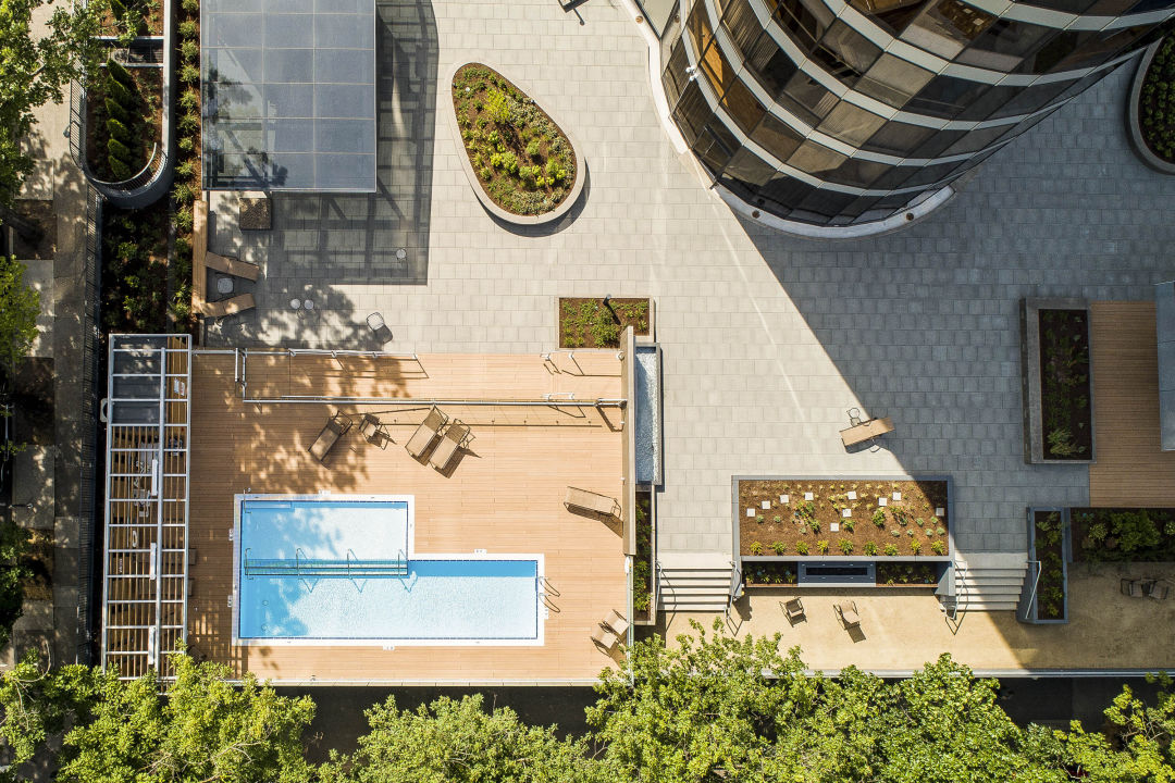 A long list of amenities comes with the price (and HOA fee), including 24-hour concierge, gym, library, heated saltwater pool, gardens, and BBQ area tucked under a swooping glass pergola—not to mention regular window washing to keep those views pristine.