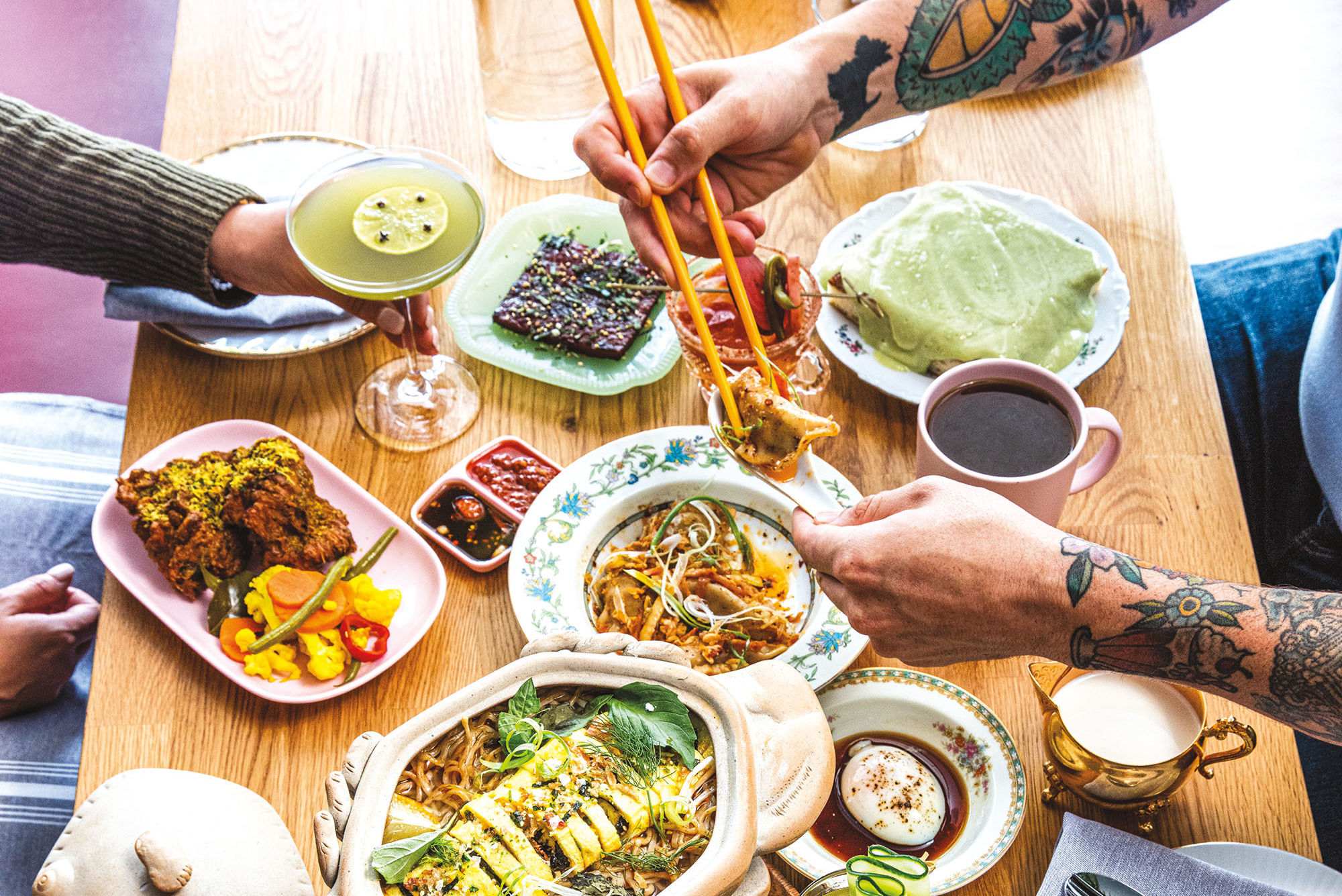 Joined to the cinema on the same NE Sandy Boulevard block is Vivienne Kitchen and Pantry, a quaint breakfast spot serving up Extracto coffee and a variety of carefully crafted American bites. A block south, on NE Broadway, sit vegan haven Doe Donuts and long-standing Chinese spot Chin’s Kitchen, which boasts heavenly handmade dumplings and one of PDX’s best neon signs. A a short walk west, nestled in an unassuming strip mall, is Gado Gado, a playful Indonesian-fusion spot slinging A-grade cocktails with an ever-changing menu and some serious visual exuberance. It’s one of the city’s best restaurants.